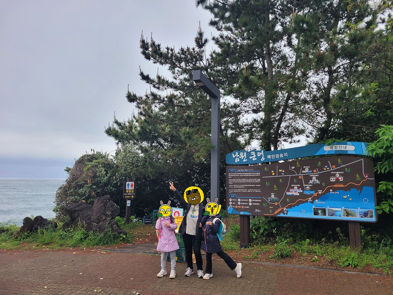 오물오물거리며 사탕을 먹다 보니 어느새 '남원 큰엉' 입구에 도착했다. 예전에 남편과 산책하며 웅장한 해안 절경에 진심으로 감동해서 다른 계절에 또 가보고 싶다고 생각한 바로 그 곳이었다.