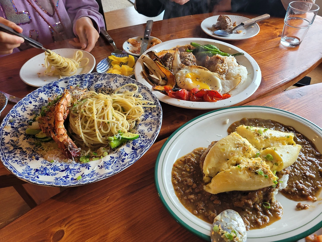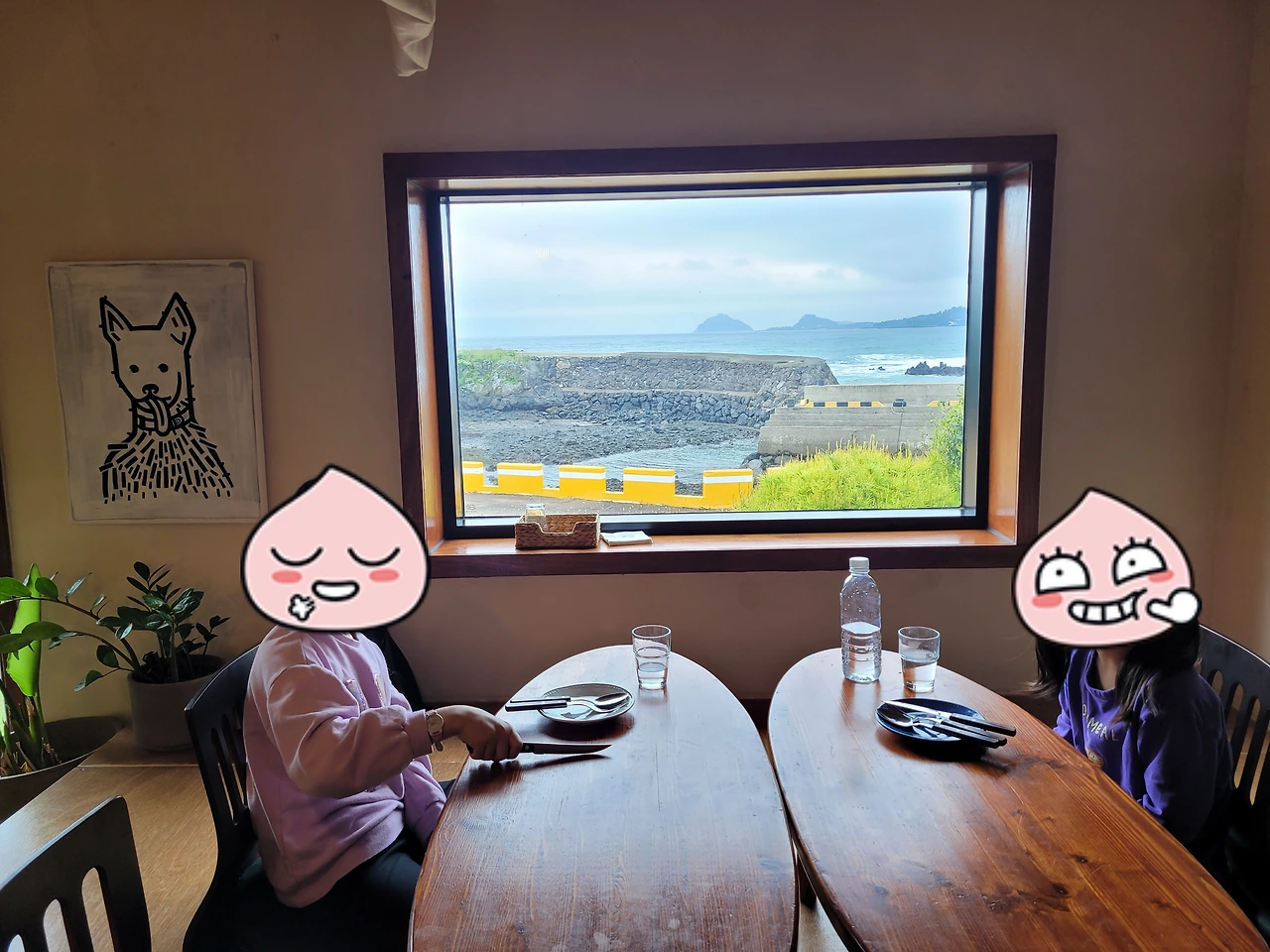 '테이블 앤 데스크'라는 작은 식당이었는데, 창문 너머로 아름다운 바다도 보이고 아늑한 느낌의 인테리어가 예쁜 곳이었다. 게다가 음식 맛은? 말해 뭐해! 너무 맛있어서 네 사람 다 폭풍 흡입 모드였다.