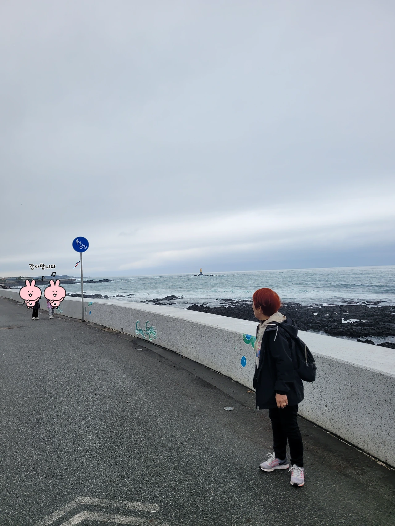 바다 풍경이 예술이라 감상하고 있으려니, 지나가던 모녀분께서 걸음을 멈추셨다. 엄마로 보이는 분이 "사진 찍어 드릴까요?"라고 물어오셨고, 감사하다며 휴대폰을 건네자 따님으로 추정되는 분이 사진을 찍어주셨다.