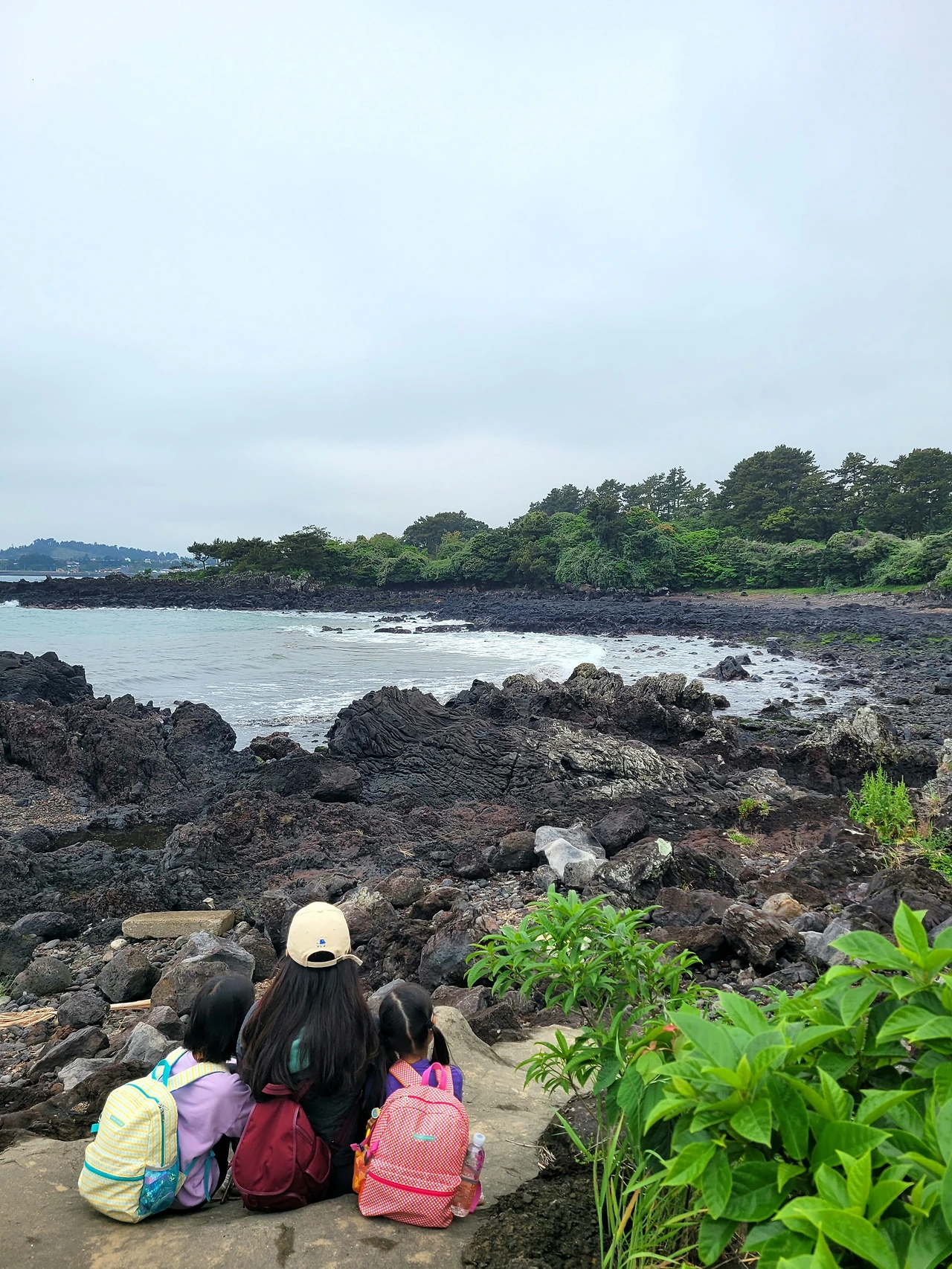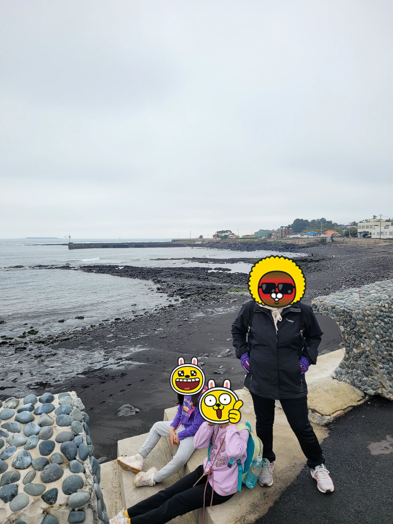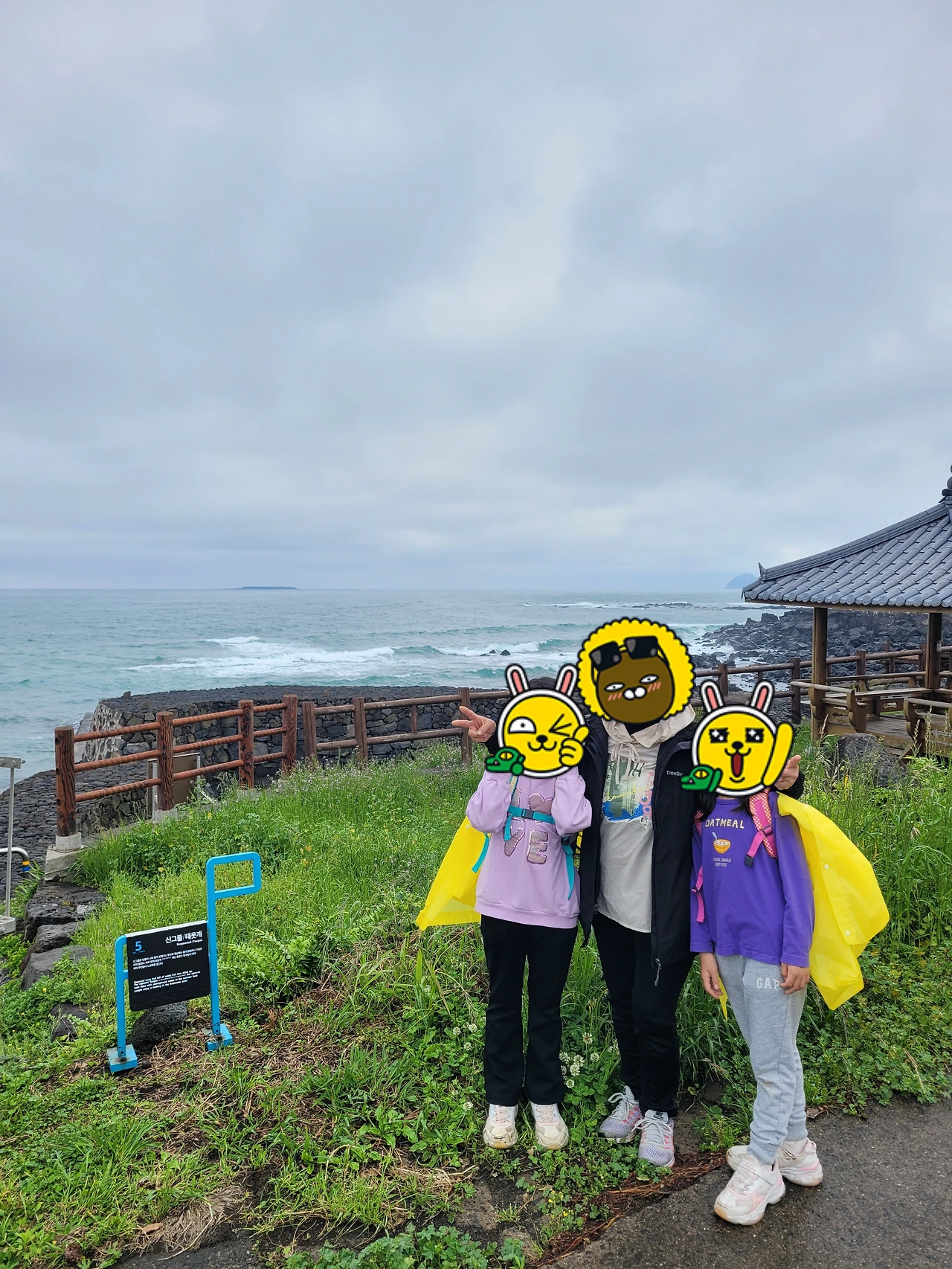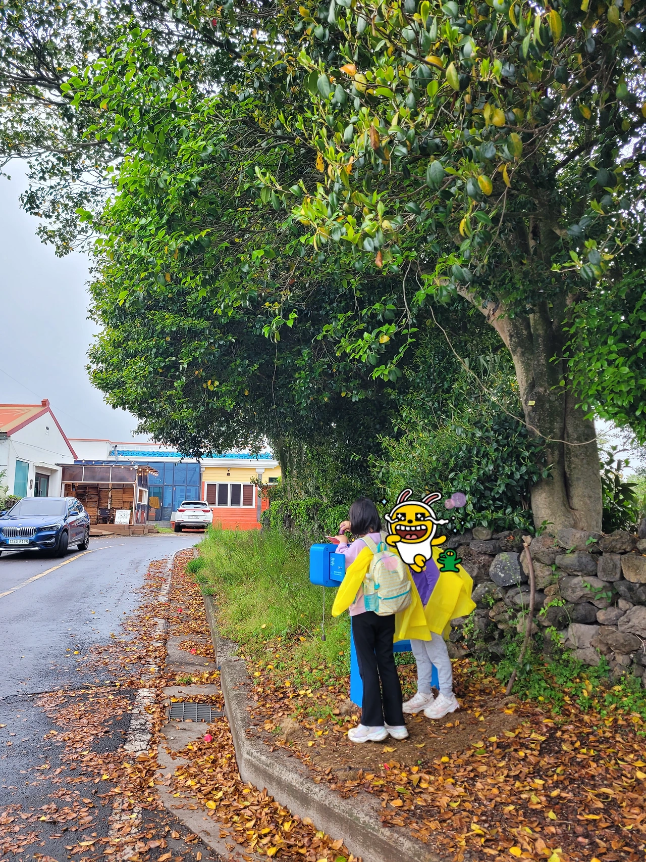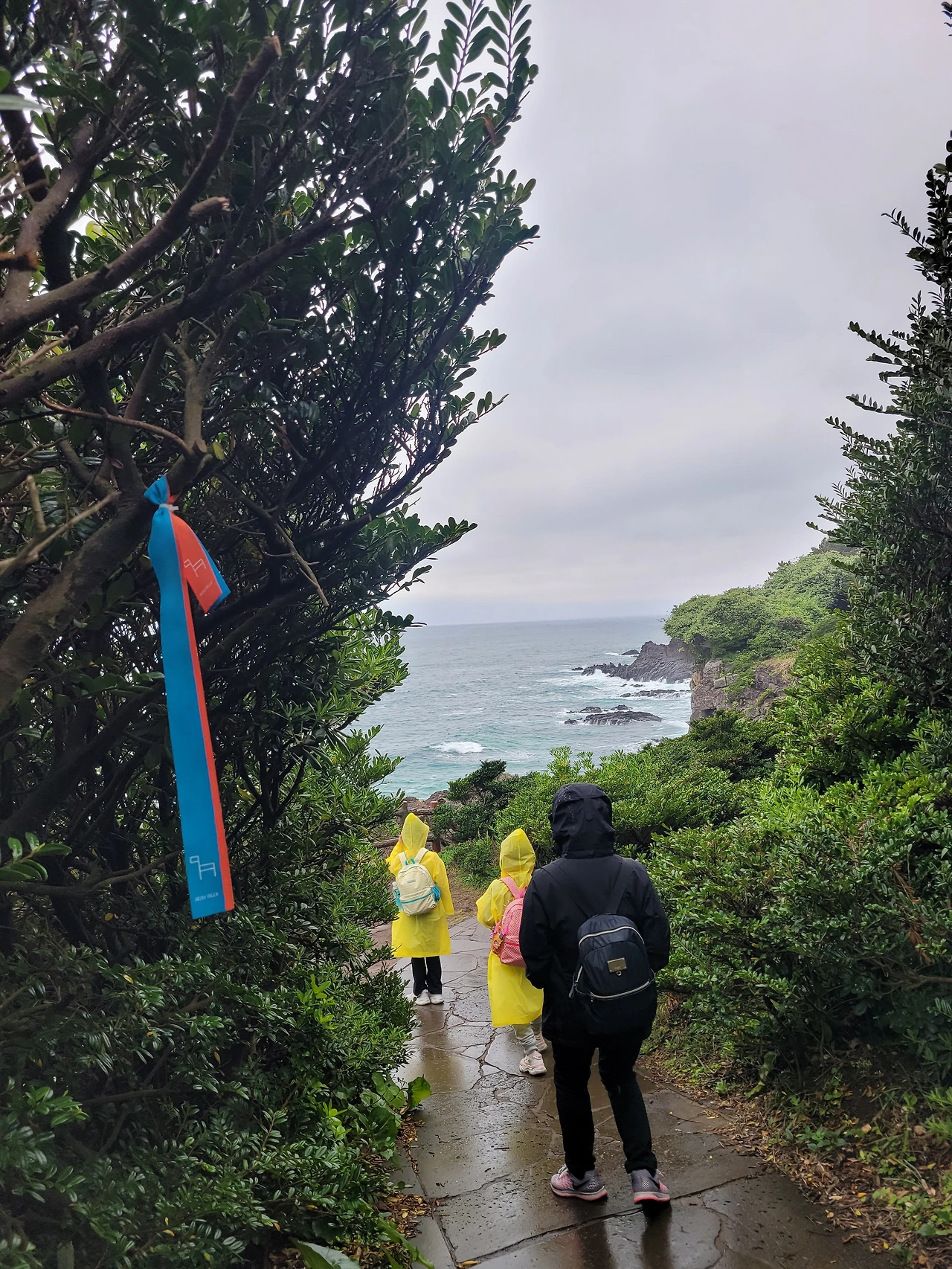 아이들은 한사코 우비 입기를 거절했지만, 나는 기어코 우비를 꺼내 입혔다. 예전에 레고랜드에 놀러 갔을 때 샀던 일회용 우비였다. 과연 이걸 또 쓸 일이 있을까 하며 챙겨 두었는데, 제주까지 가져와서 쓰게 되다니!