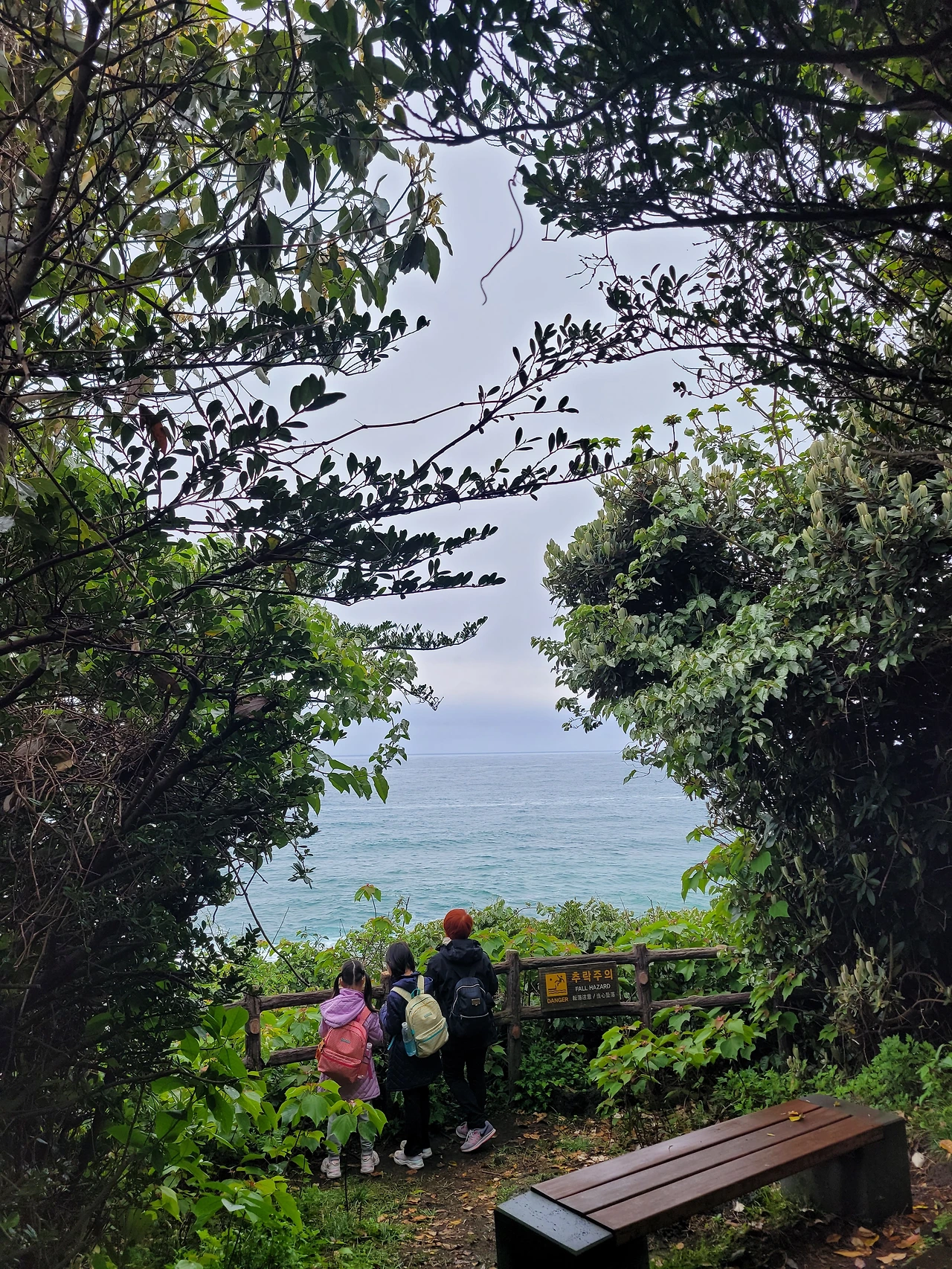 걱정은 태산같이 되었지만, 한 사람씩 겨우 지나갈 수 있는 해안 절벽 길이었기에 아이들을 먼저 가게 했다. 어차피 어른들보다 잘 걷는 아이들이었다. 다음은 우리 엄마 차례! 엄마는 잔뜩 겁에 질린 표정이셨다.