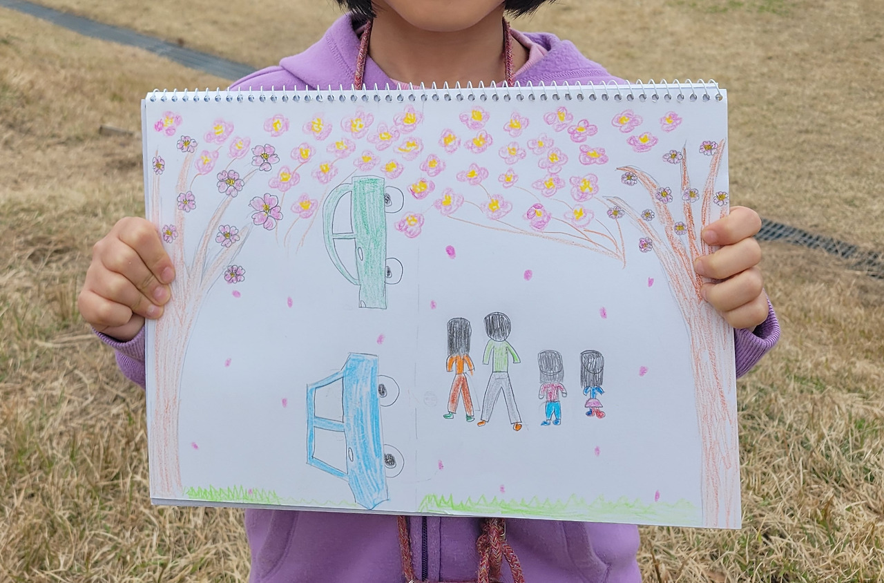 아이들은 열악한 환경 속에서도 벚꽃길을 걸었던 우리 가족의 추억을 예쁜 그림으로 남기고 있었다. 그 모습이 정말로 사랑스럽고 예뻐 보였음은 물론이다.