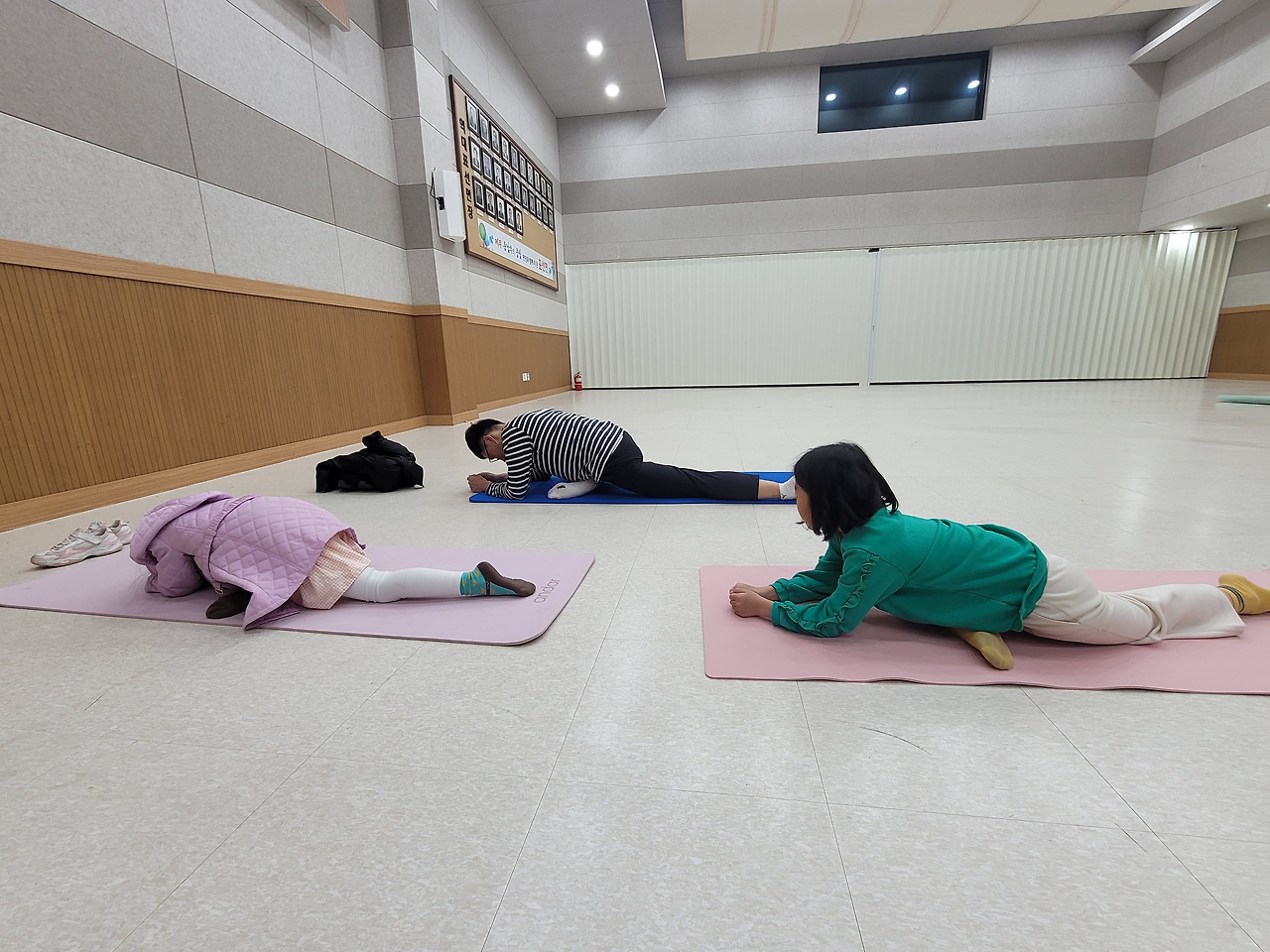 상반기에는 면사무소에서 운영하는 프로그램 중 '바른 자세 체형 교정 운동'을 신청해서 수강하게 되었다. 다행히 아이들도 참여 가능해서 일주일에 한 번씩 온 가족이 함께 운동하는 첫 기회를 얻게 되었다.