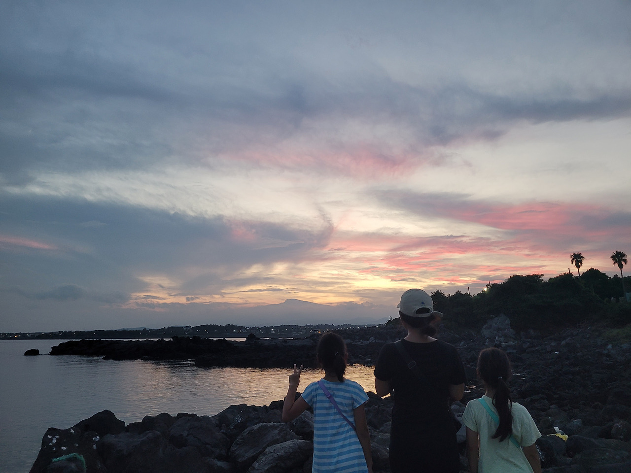 매일 보는 하늘과 바다도 늘 다른 모습과 색깔을 하고 있다는 걸, 아이들이 가장 먼저 발견하고 말해줄 때가 있다. 자연의 변화를 시시각각으로 느끼고, 그 아름다움에 경탄하는 게 일상이 된 지금에 감사할 따름이다.