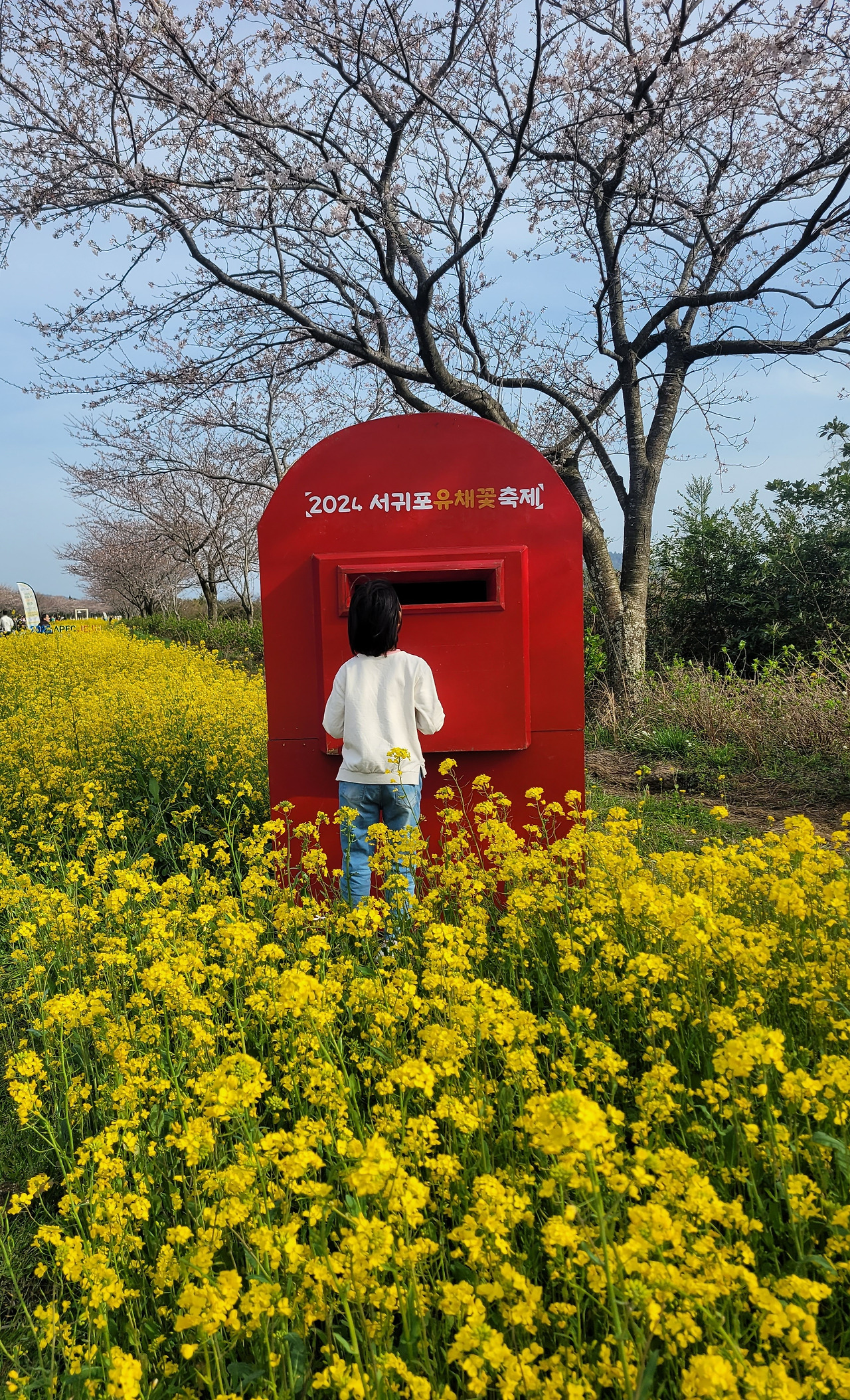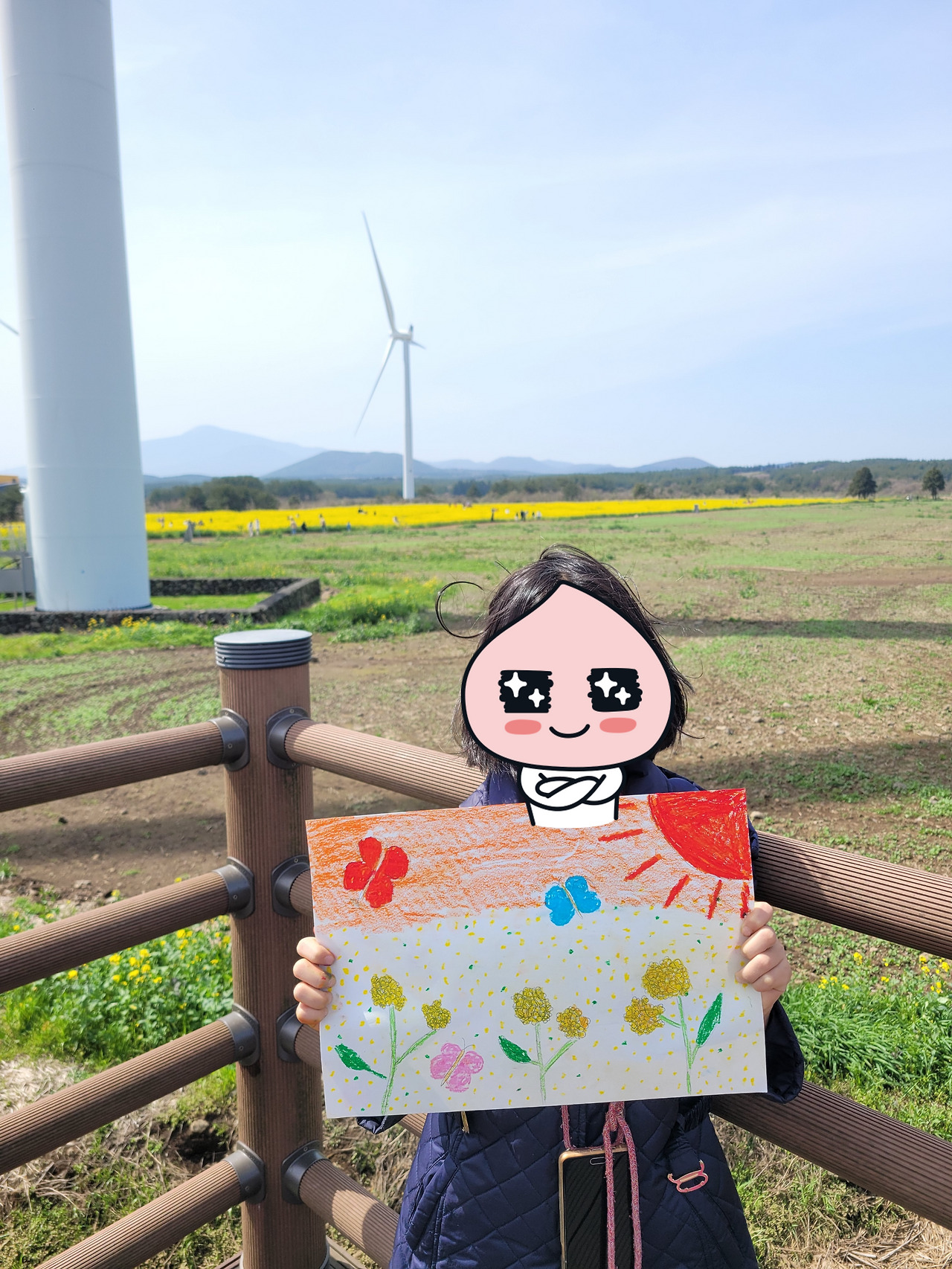 엄마, 그림 제출하기 전에 유채꽃이랑 같이 사진 찍어 주세요!