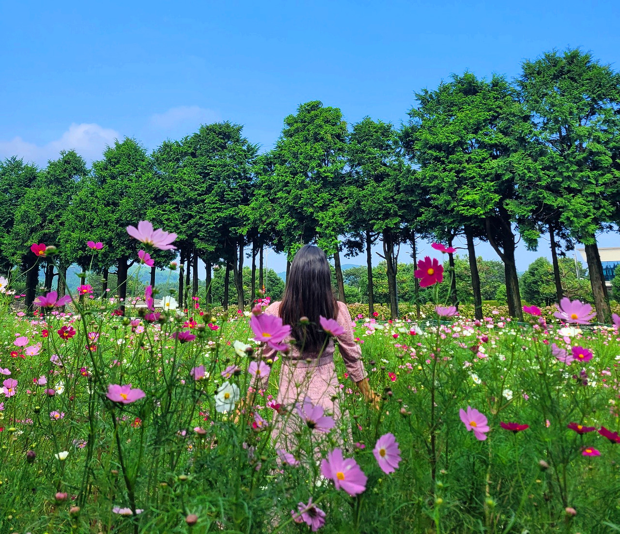 출렁이는 억새의 은빛 물결을 따라 걷는다.