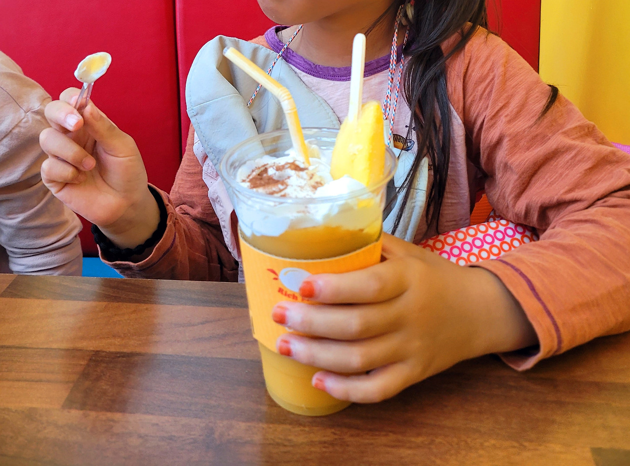 엄마가 약속한 대로 망고 쉐이크 사줄게!