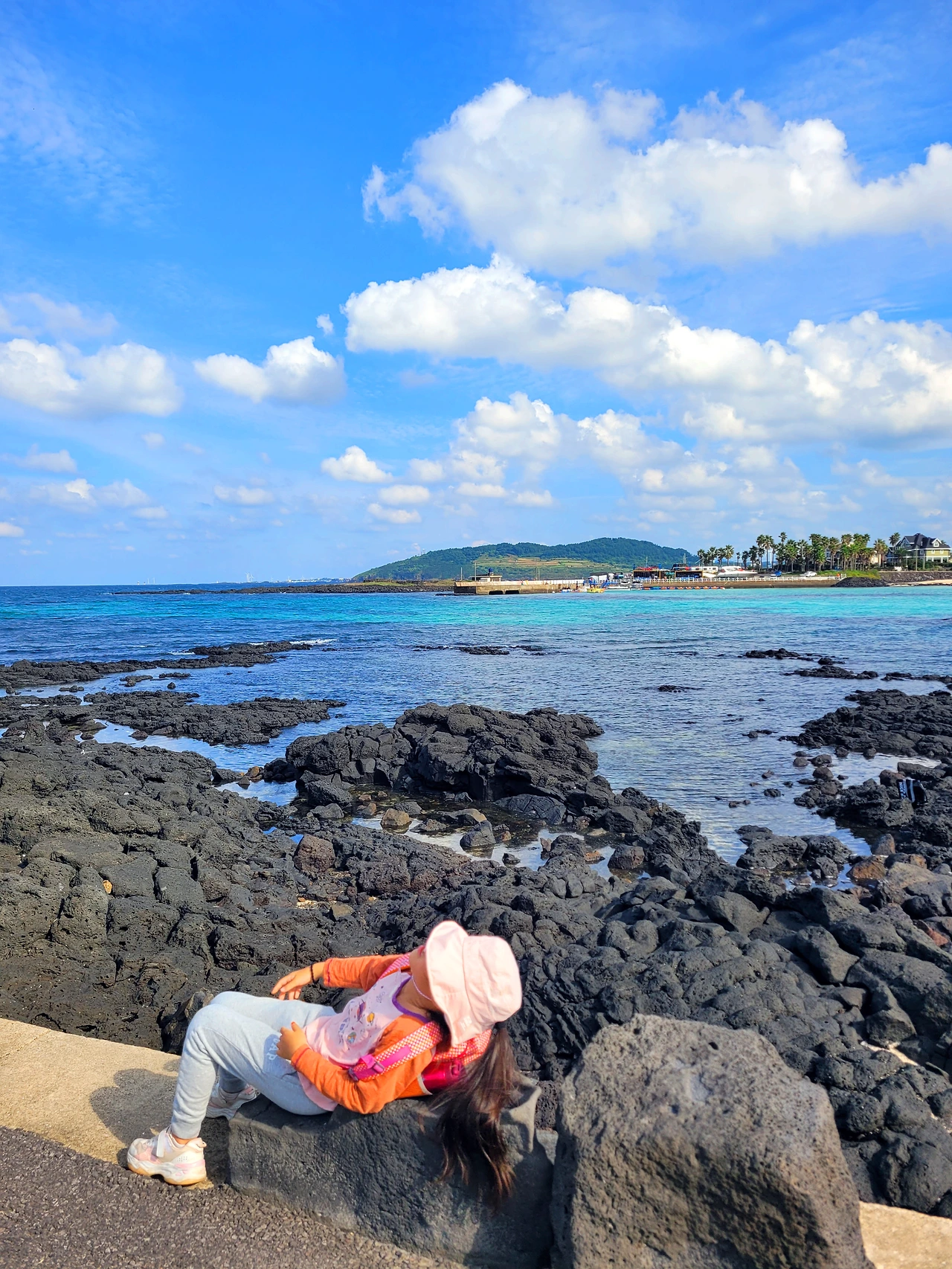 엄마가 함덕 해수욕장에 도착하면 망고 쉐이크 사줄게!