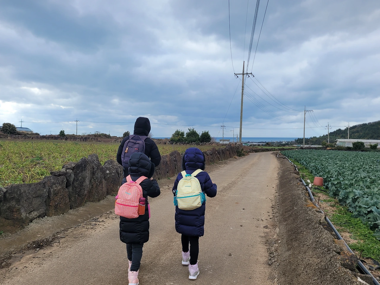 엄마, 왜 역방향으로 걷자고 하는 거야? 나는 역방향 싫은데!