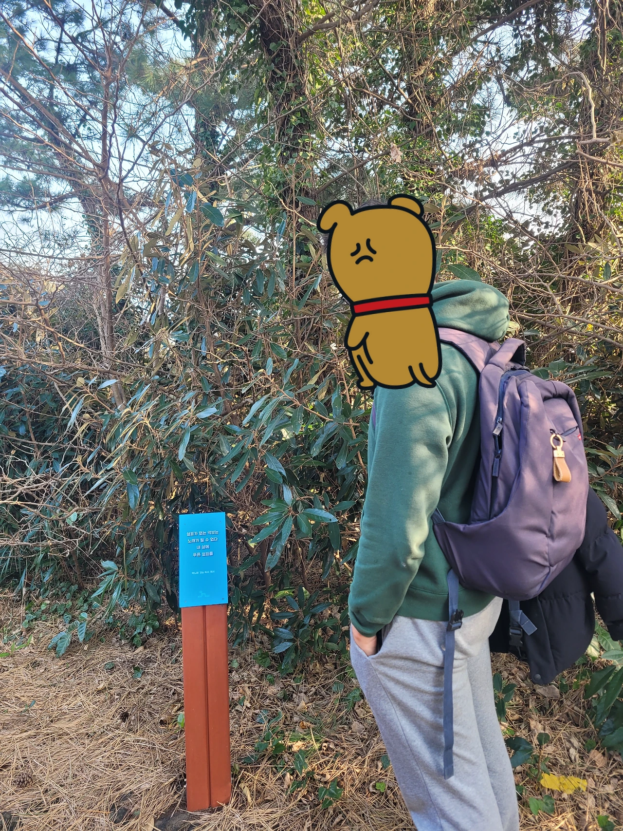 "진짜? 우리는 다리가 아파서 하루에 반 코스만 걷는단다. 오늘도 중간 스탬프 있는 곳까지만 걸을 거야~"