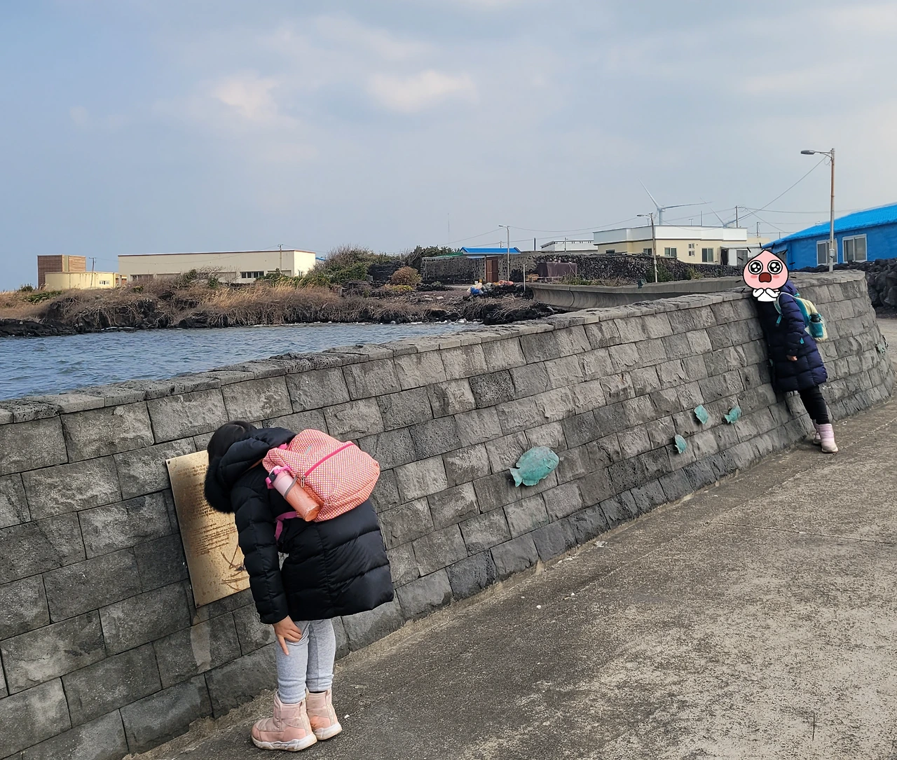 아이들과 지난 여름날을 회상하며 아련하게 세화 바다를 바라 보았다. 마음 같아선 주구장창 앉아서 쉬고 싶었지만, 도착 스탬프가 있는 해녀 박물관까지는 조금 더 걸어야 했다.