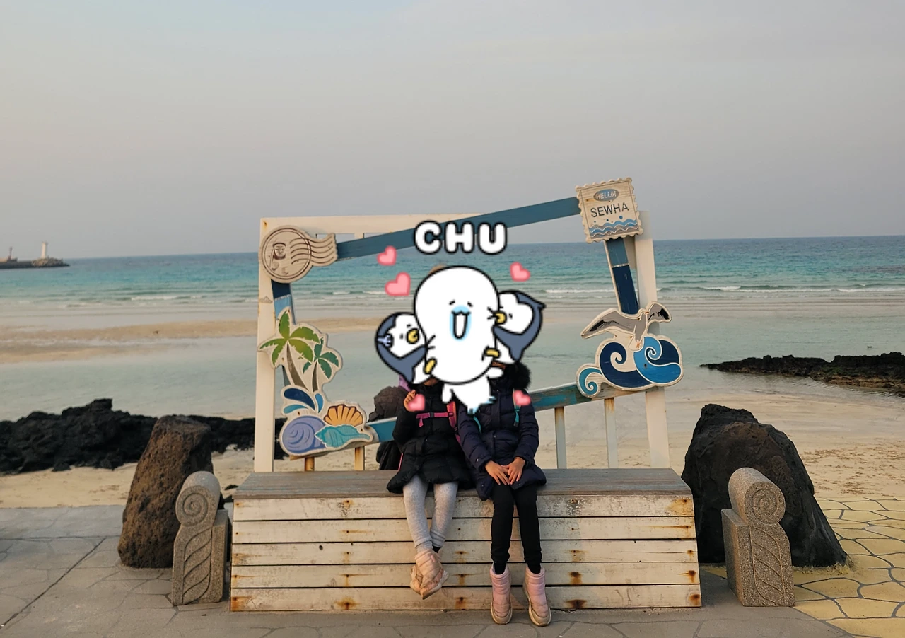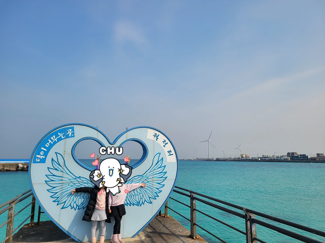 "응! 우리가 서핑 배웠던 월정리 바다~ 엄마랑 아빠는 해파리한테도 쏘였었잖아!"