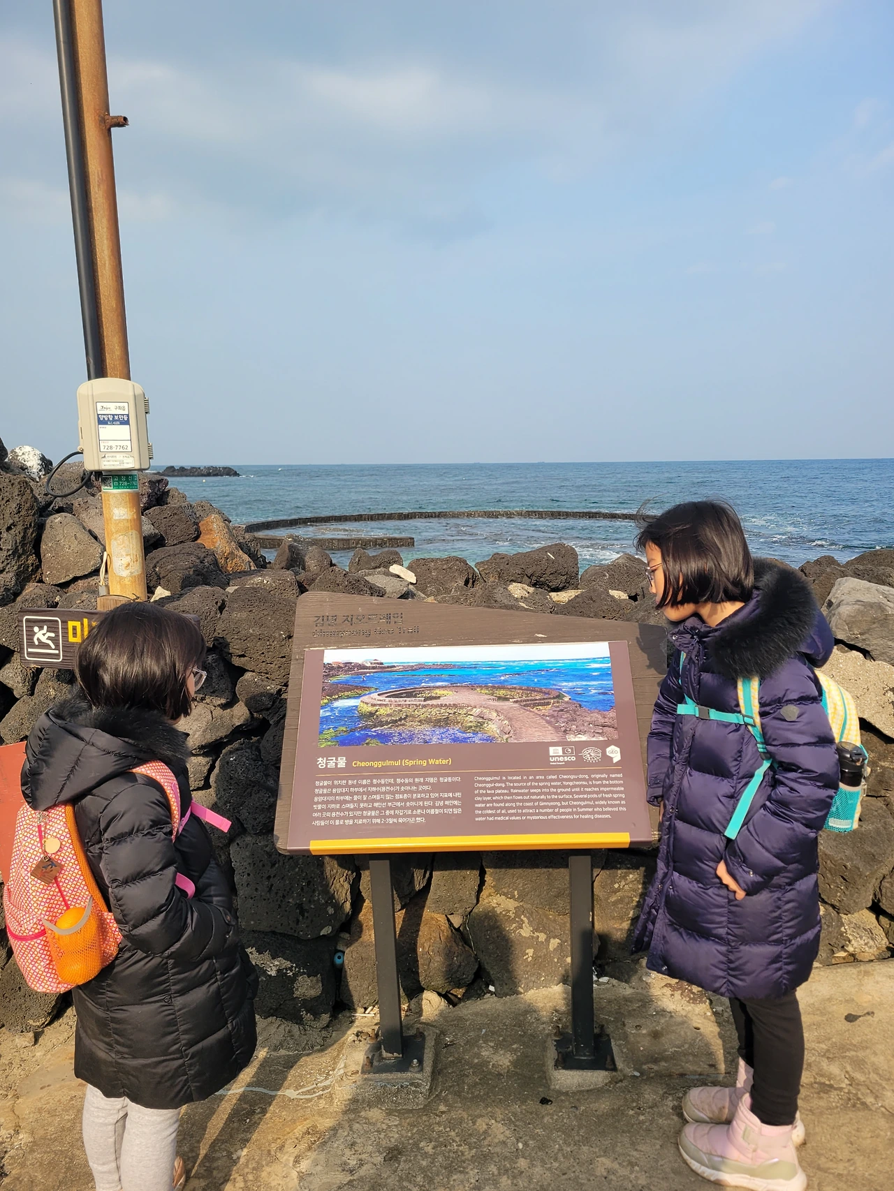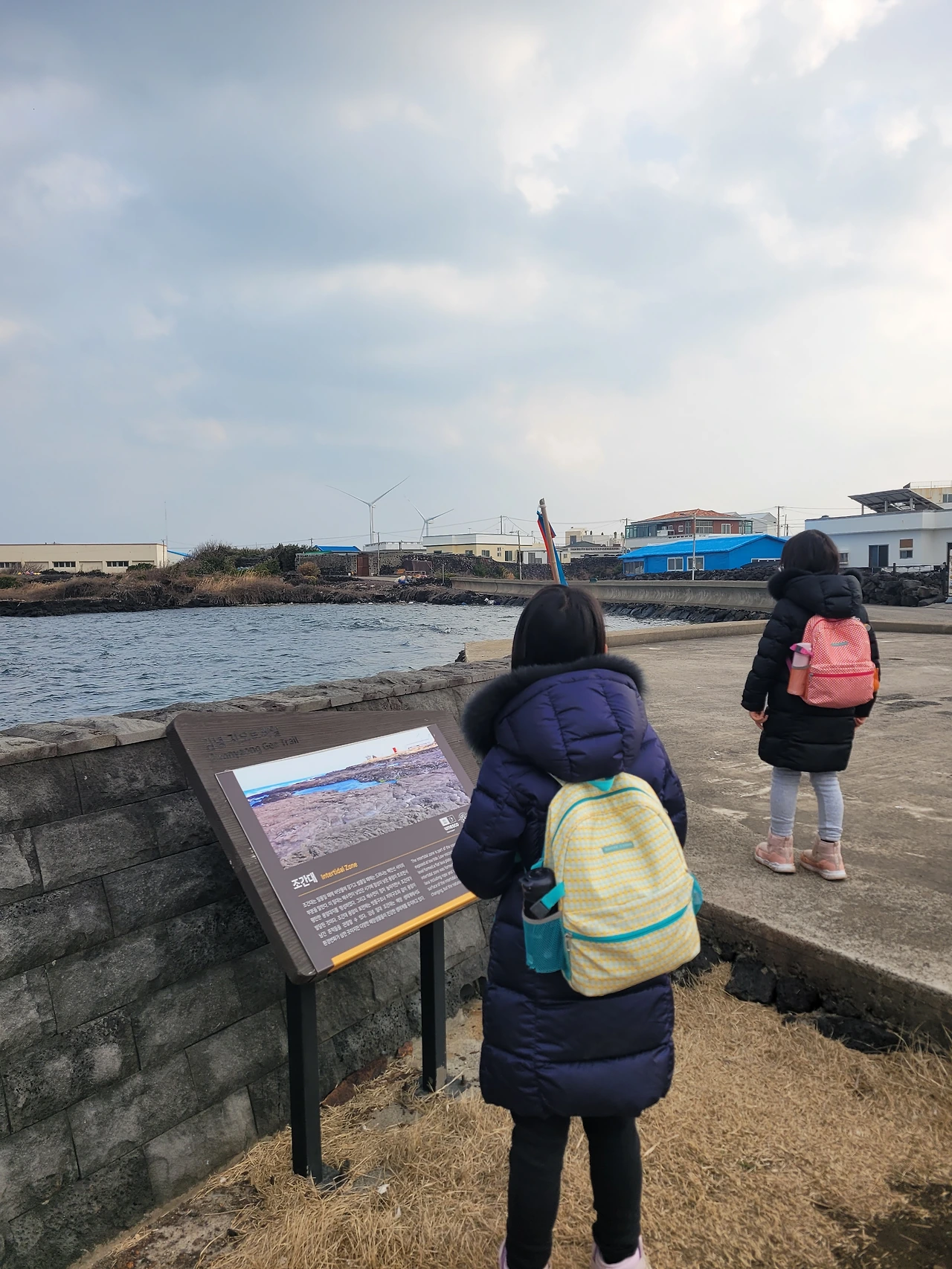 오늘 걸을 20코스 올레길은 <김녕 월정 지질 트레일>로도 지정되어 있어 가는 곳마다 설명이 잘 되어 있었다. 안내판이 나오면 열심히 읽기부터 하는 아이들이 참 예뻐 보이던 순간!