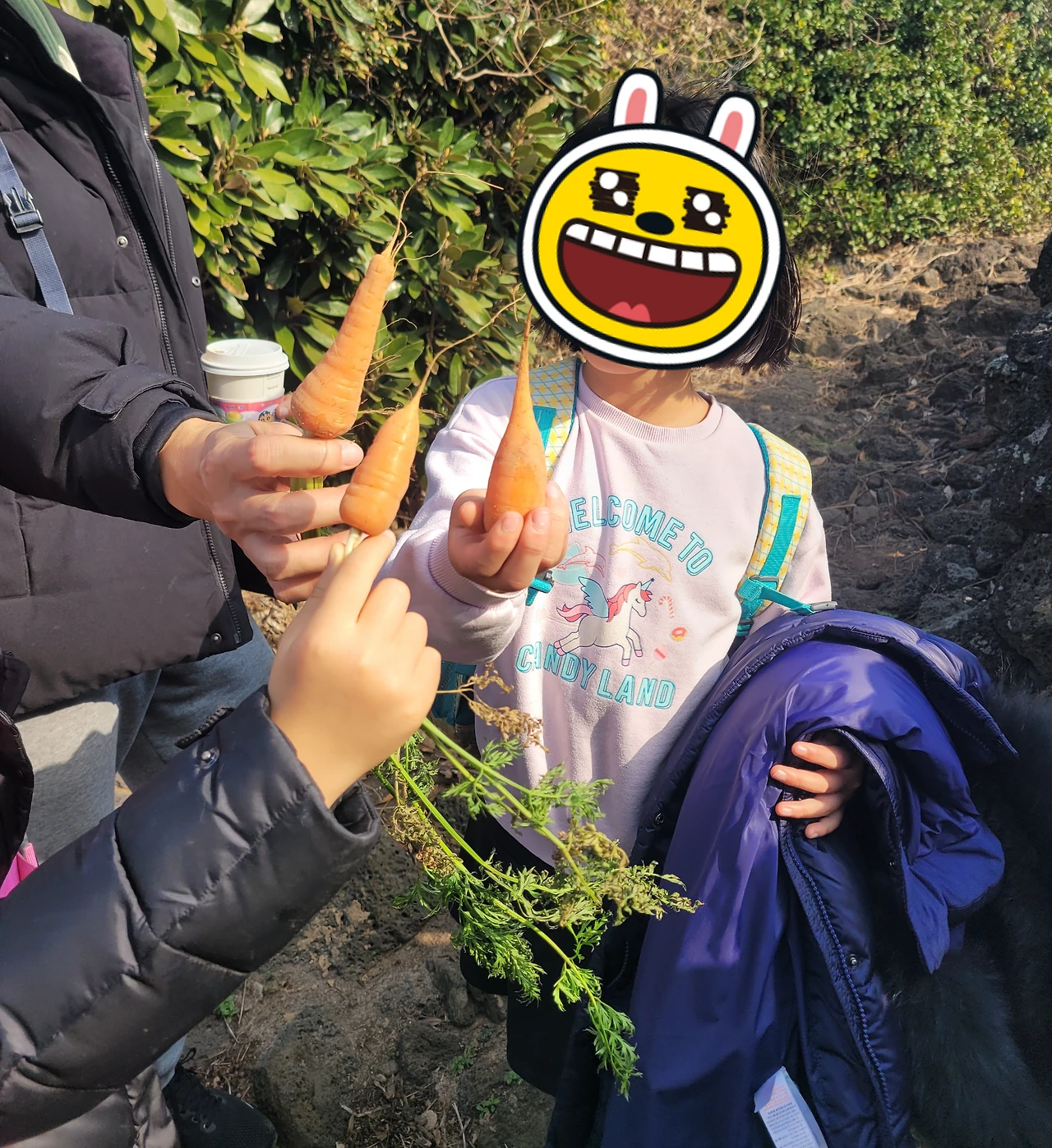 바당길을 벗어난 뒤부터는 계속 당근밭 사이로 걷게 되었다. 아이들은 흙 위에 아무렇게나 뒹굴고 있는 당근들의 정체가 궁금했는지 아빠에게 질문을 했다.