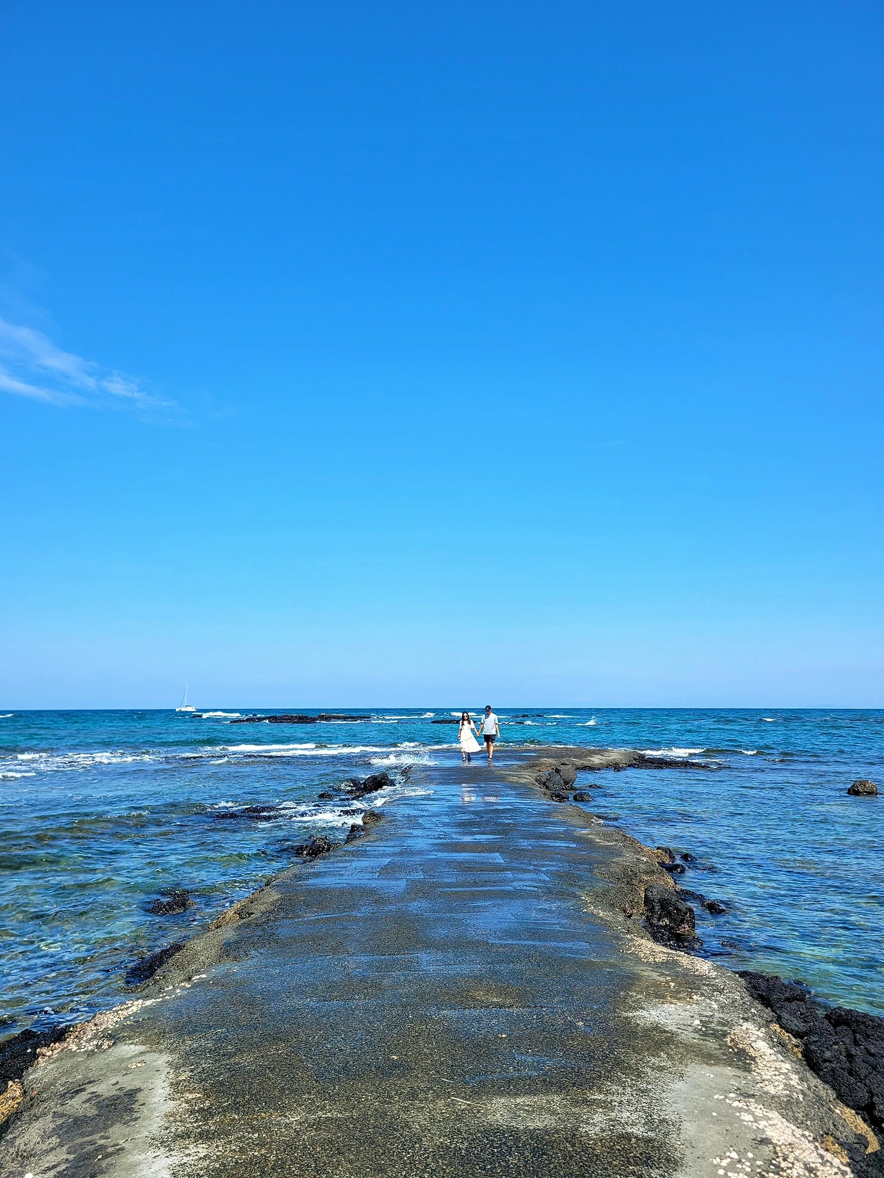 아이들은 말릴 새도 없이 우다다다- 뛰어서 바닷물이 찰랑거리는 길을 건너 갔다. 이미 길 건너편으로 넘어간 아이들 때문에라도 나와 남편은 무조건 이 길로 가야만 했다.