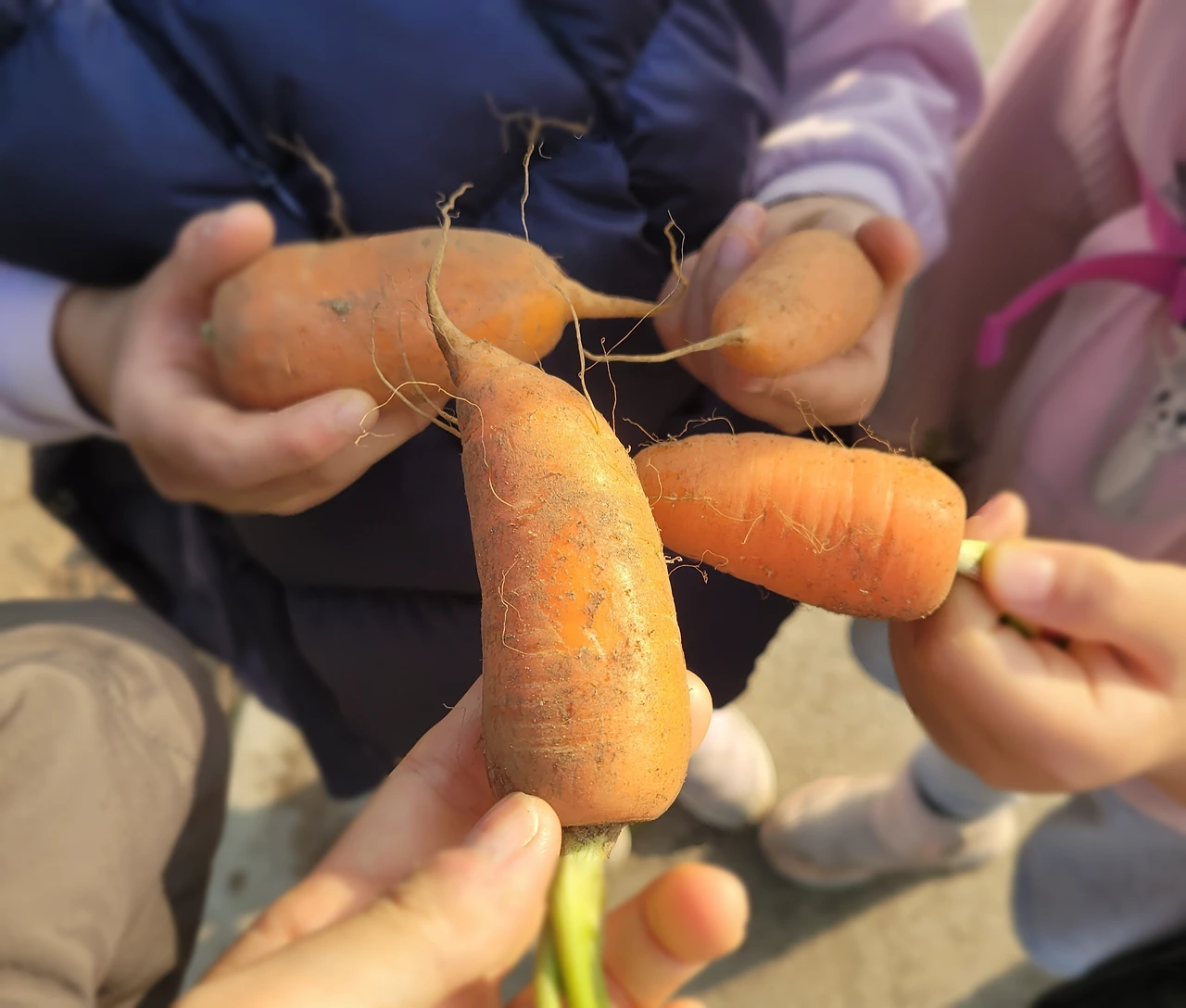 "상품성 없는 작은 당근은 밭에 버려 두고 크고 예쁜 당근만 수확해 가서 그럴 거야!"