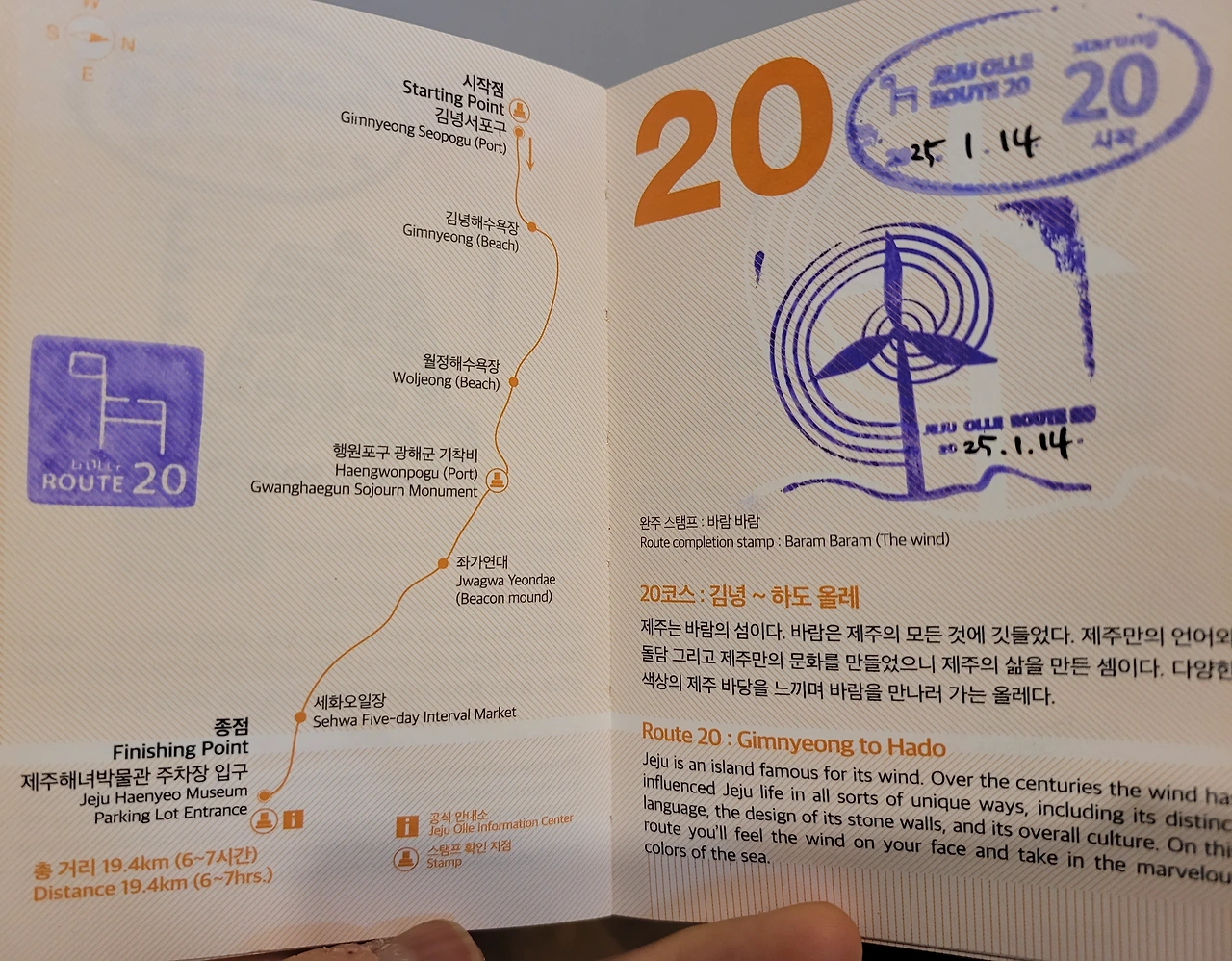 "네! 저희는 올레길 완주할 건데, 오늘 다 걸으면 네 코스만 남아요~"