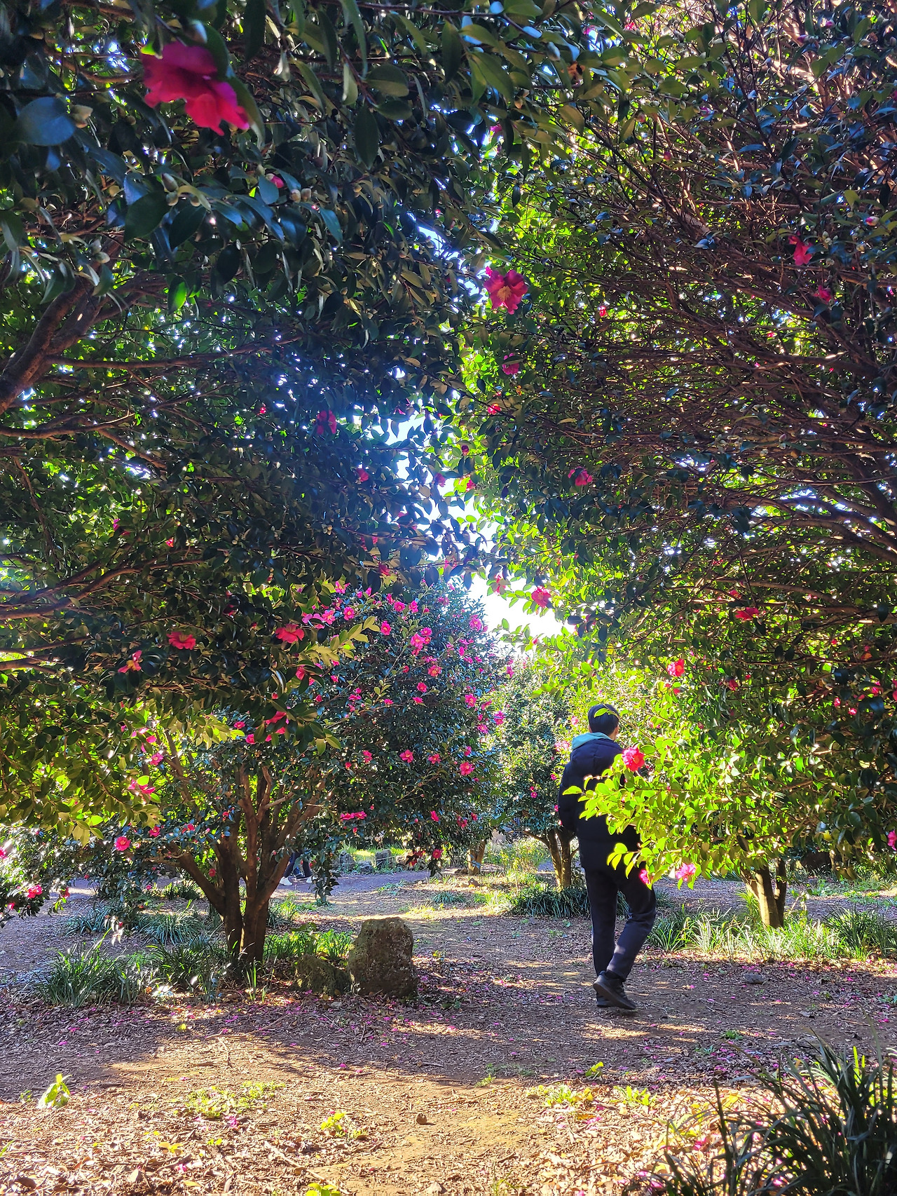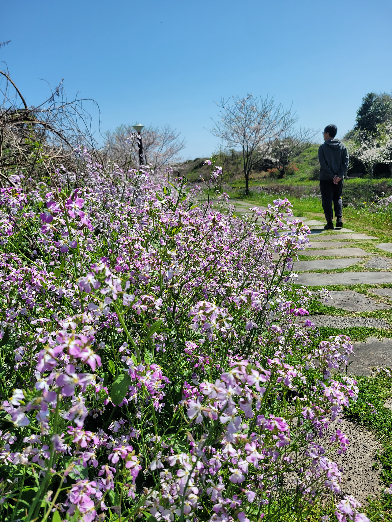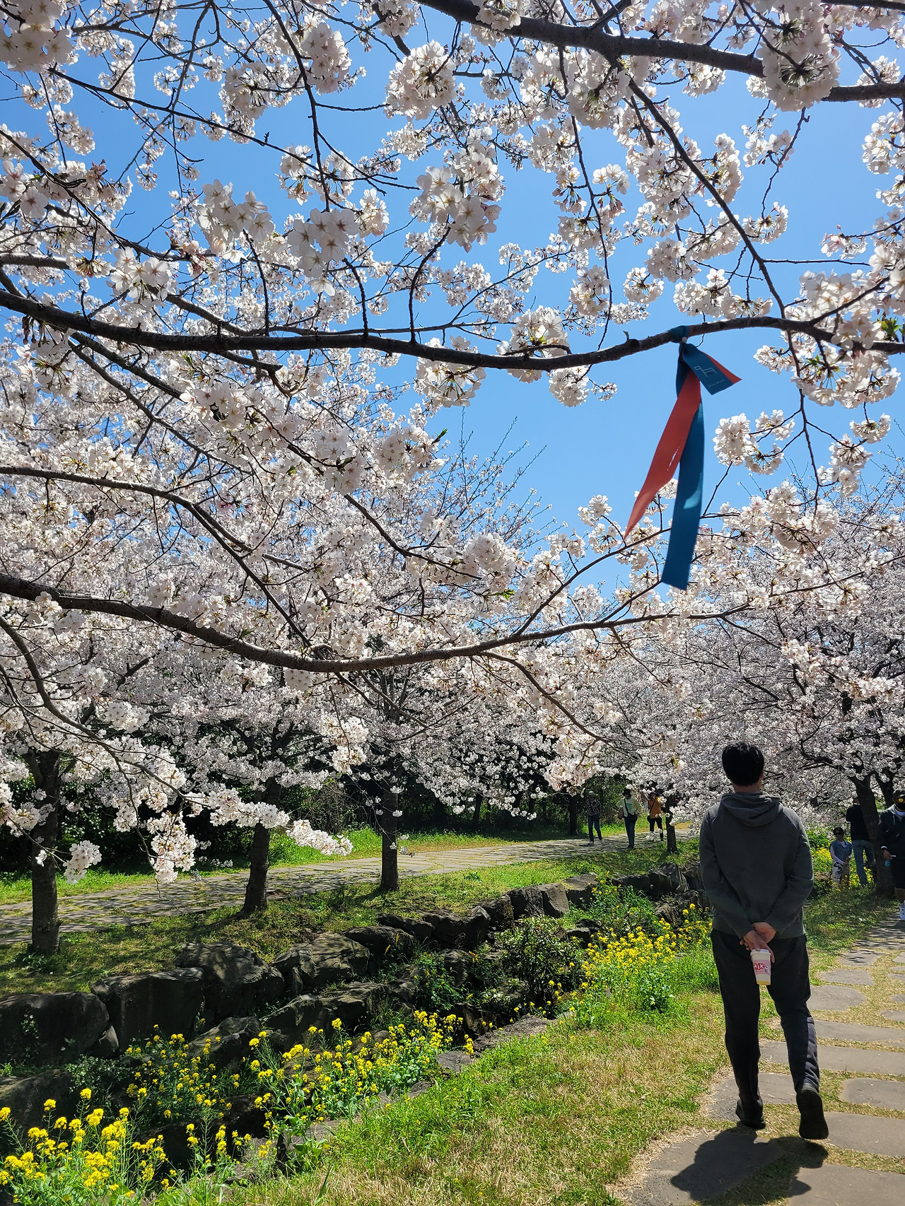 꽃길을 느긋하게 걸으며, 온몸으로 봄을 느끼는 중인 남편^^