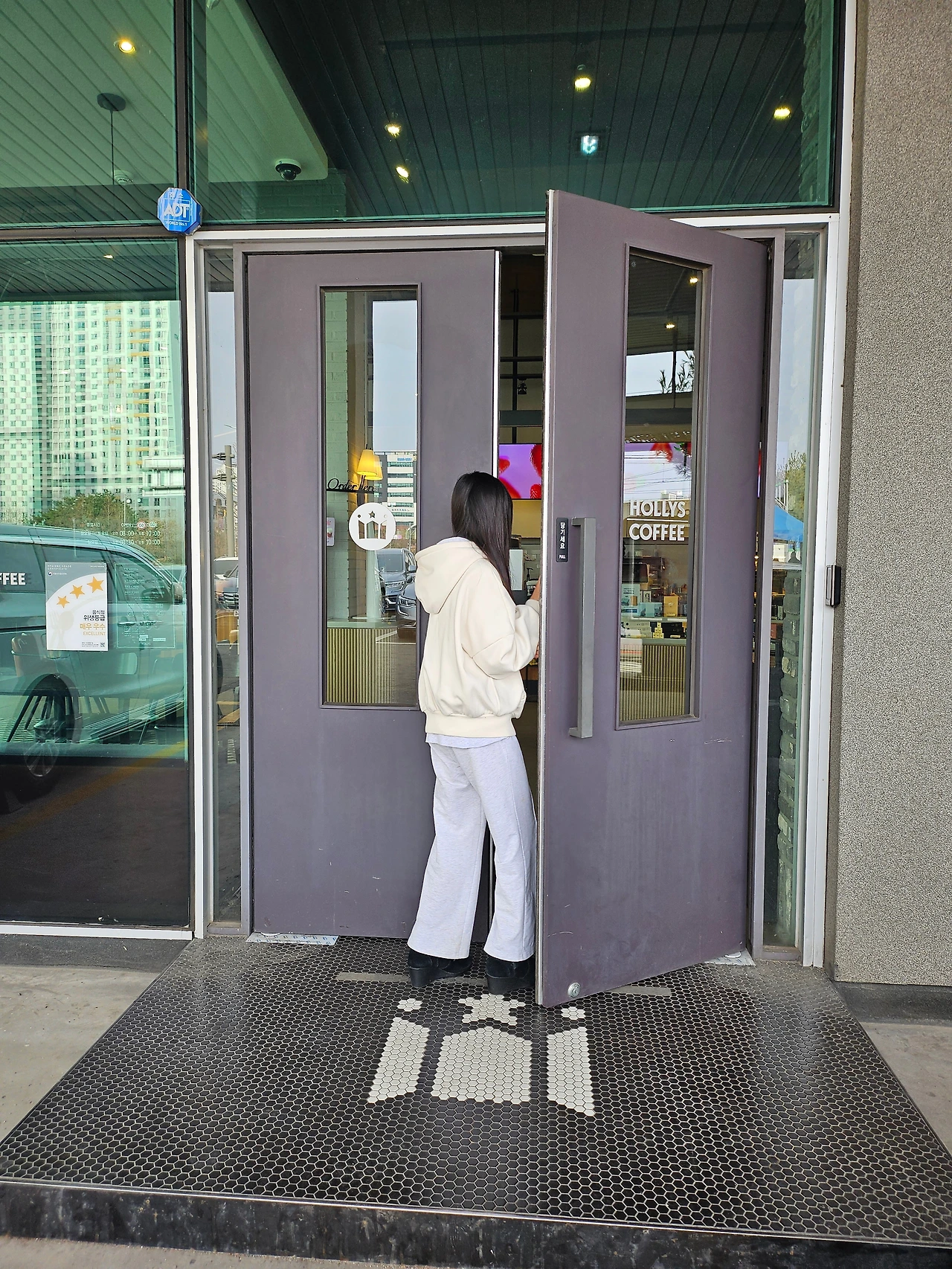 "엄마 다음 달에 또 커피숍 가기로 했잖아~ 2월 됐으니까 빨리 가자!" 갔다 온 지 일주일 만에 달이 바뀌었다는 꼼수를 부리며 엄마를 재촉한다. 아침으로 사골국에 한 그릇 거하게 꾹 꾹 말아먹고 출발한다. 오늘은 딸과 둘만의 데이트다! 내 부츠를 신고 또각또각 소리에 기분이 좋아 엣지 있는 걸음을 선보여준다. 그녀의 입장~ 주차장에 차는 가득한데 사람이 한적하다. 조용하니 아주 맘에 든다. 밥을 방금 먹고 왔지만 여자들에게는 디저트 배가 따로 있지 않는가? 우리 딸, 체리님은 이름도 어려운 유자민트 오로라티와 베이글과 크로크무슈, 엄마는 홍자몽차를 시켜 아무도 없는 3층으로 올라간다.