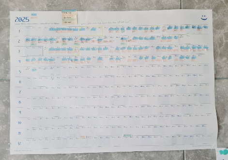 매년 1월이 되면 올해의 계획을 세우지만 5월에서 6월에 접어들면서 연초 계획들이 흐지부지 되는 경험을 하였습니다. 어떻게 하면 1월에 세웠던 일들을 끝까지 할 수 있을 것인지 고민하던 중 유튜브 무빙워터님이 제작한 대형 <연간플래너 이상>을 만나게 되었습니다.