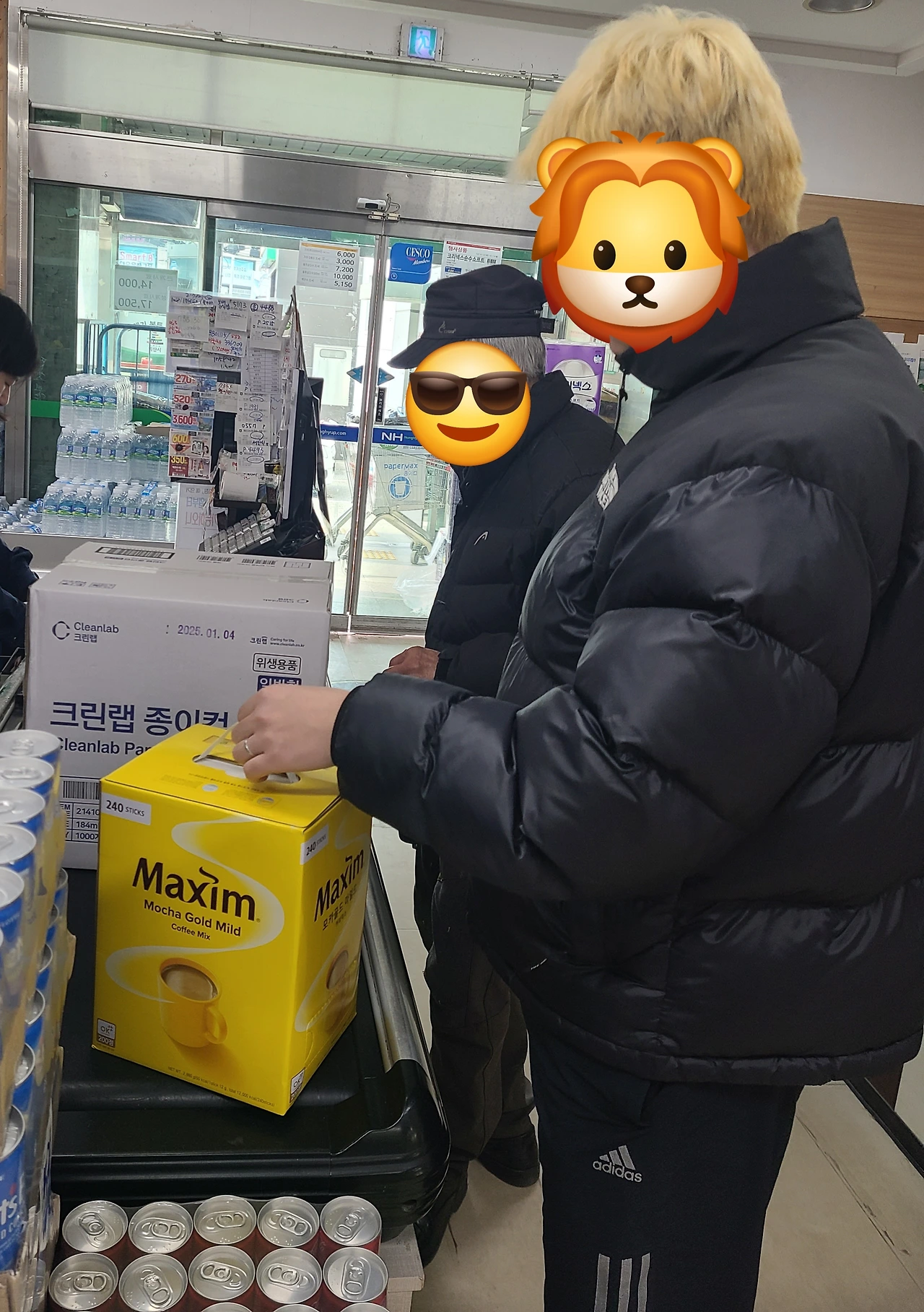 곧바로 라이언이 눈치 빠르게 종이컵 한 상자를 들고 할아버지 뒤를 따라다녔습니다. 노란 믹스커피 큰 상자와 부탄가스까지 짐이 꽤 무거웠습니다. 할아버지는 뒷짐을 지고 앞서 걸으시고 그 뒤를 라이언이 종이컵 상자와 부탄가스를 이고 지고, 저는 믹스커피만 들고 희희낙락 뒤따랐고요. 계산대에 물건을 올려놓고 아들이 힐끗 저를 바라봤어요. 계산을 또 본인이 해야 하는 거냐는 제스처였겠지요. 저는 웃으며 고개를 살살 흔들었지요. 이건 공금처리니까.