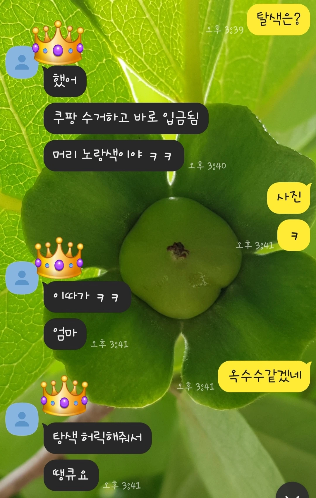 아들은 드디어 노란 초당옥수수가 되어 집에 내려왔습니다. 탈색을 하고 노란 물을 들이니 머리카락이 라이언 같았어요. 사자털을 가까이에서 만져본 적은 없지만 아마 아들 모발과 흡사할 거라 생각했어요.