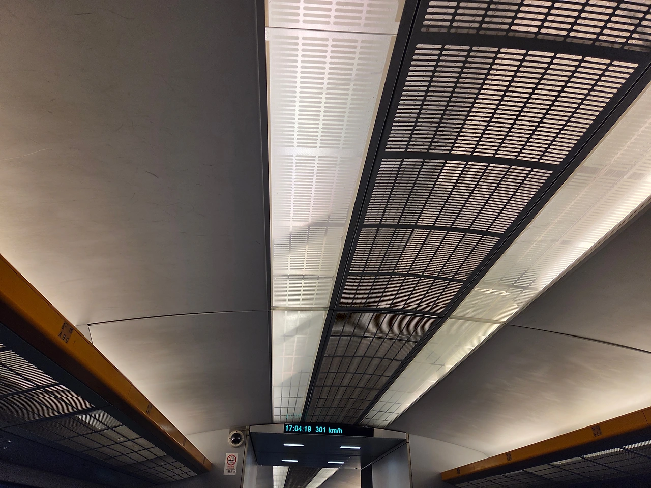 상하이 푸동공항에서 남경동로에 있는 숙소로 이동중 이용한 자기부상열차(시속 300km/h) 내부