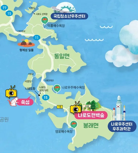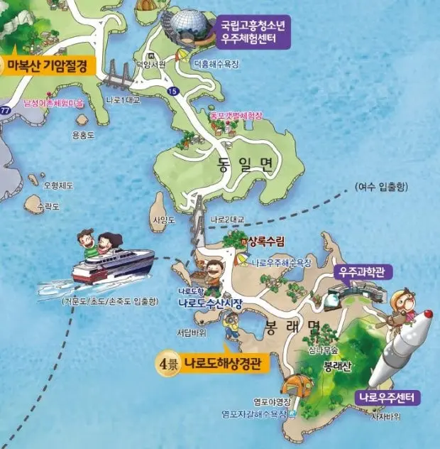 나로도는 고흥읍에서 동남쪽으로 25km쯤 떨어진 섬으로 30분쯤 걸린다.