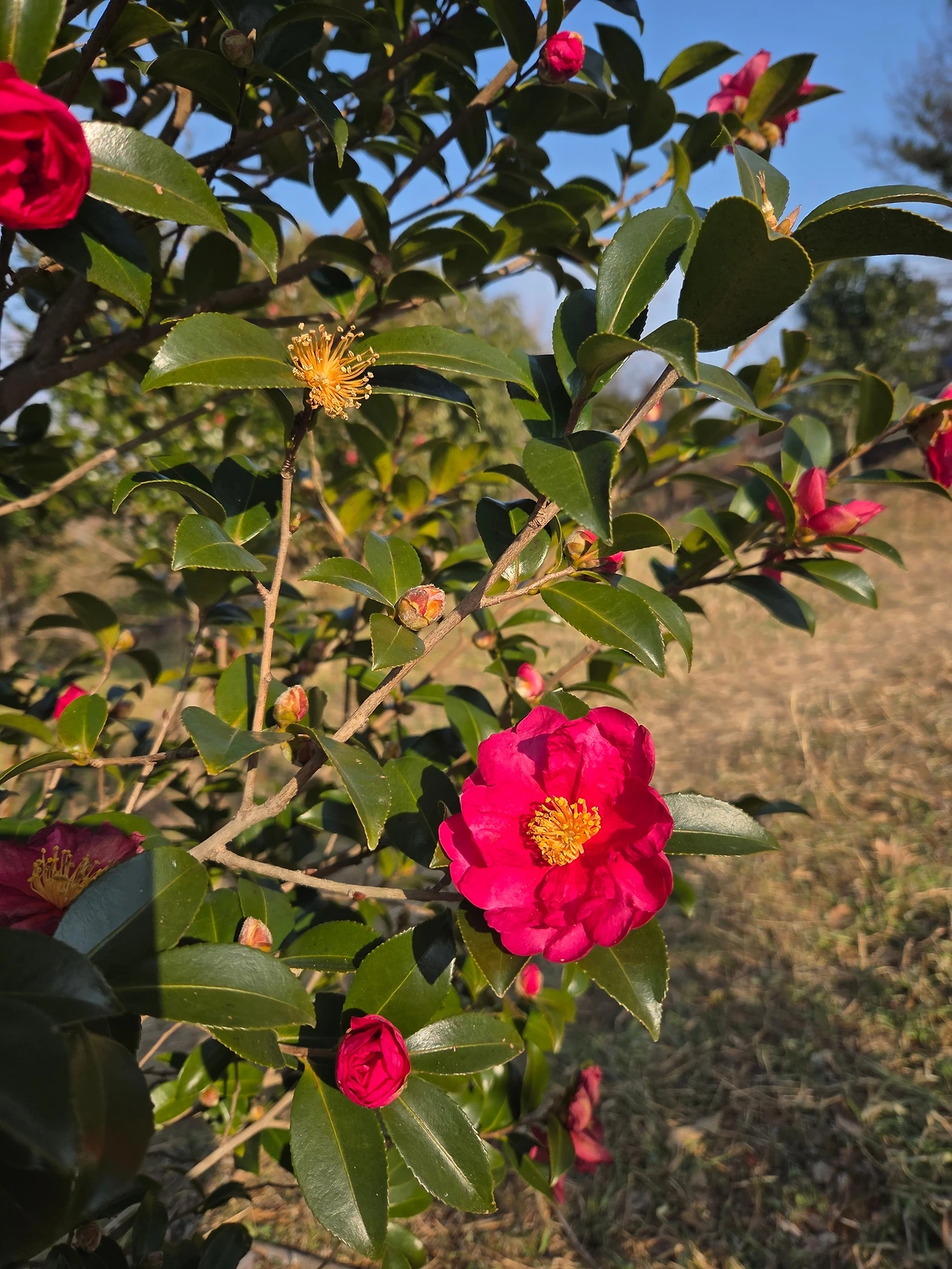 지역에서 출발이 늦다 보니 2시가 다 되어 도착했다. 남동쪽을 향한 건물이 들어앉은 언덕배기 아래 꽤 넓은 훈련장이 있고 그 앞에 바다를 끼고 있다. 진입로 쪽에 야영장도 있고 야영장 앞에 아담한 해수욕장이 있는 천혜의 절경이다. 꽃이 귀한 계절에 남도를 빨갛게 수놓는 동백꽃이 터줏대감처럼 맞이한다.