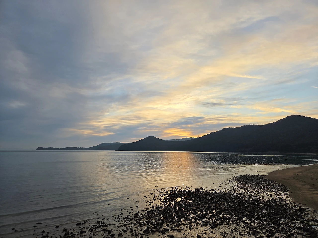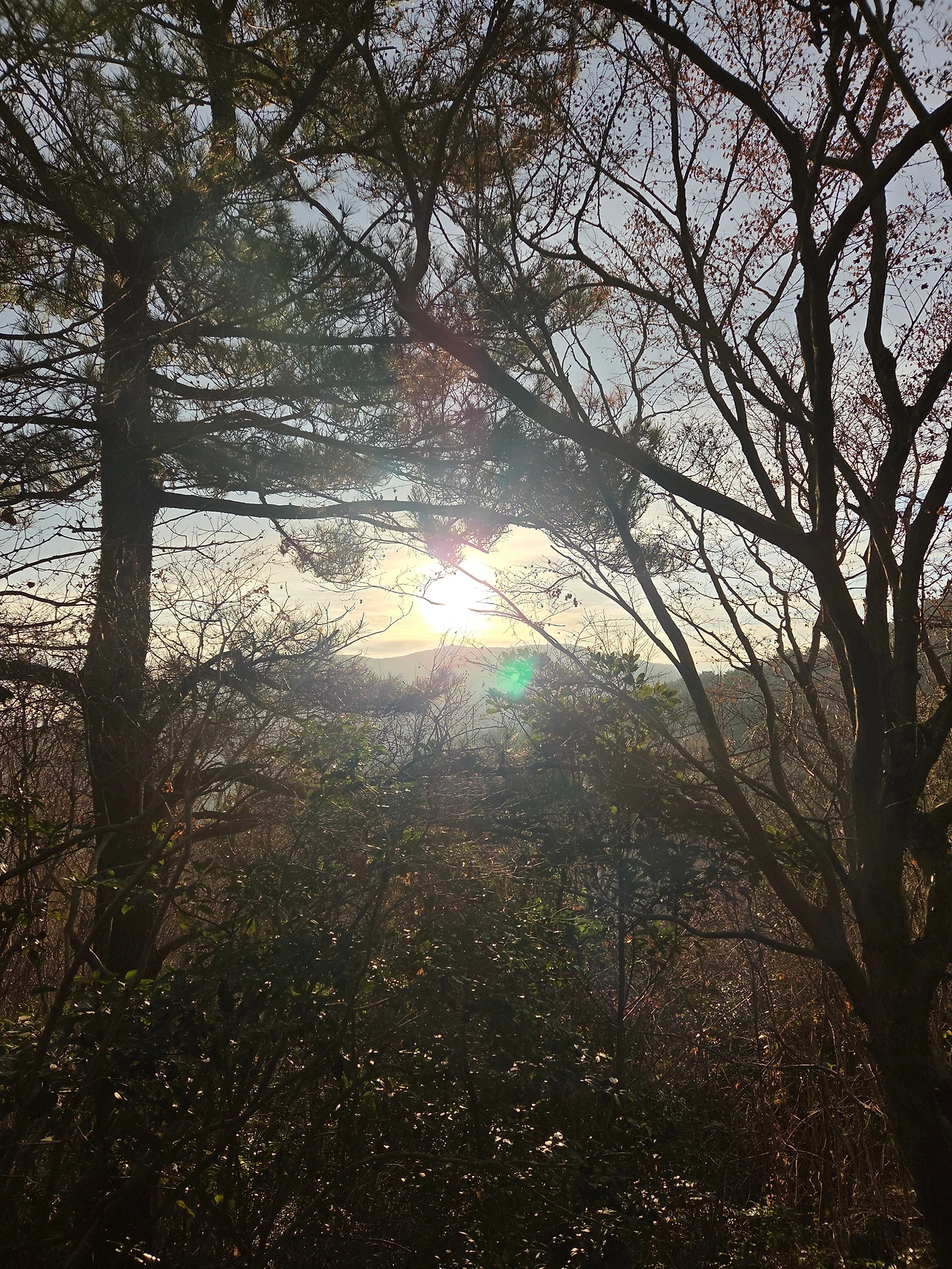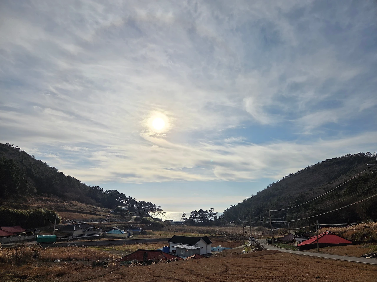 출근하는 L을 따라 아직 어둑한 길을 나섰다. 수련장 앞바다에 막 일출이 시작되고 있었다. 처음엔 바다를 낀 이면도로를 산책 삼아 걷다가 도로가 멀리 나로 2 대교 근처까지 이어진 것 같아서 차로 돌아와 이동했다. 며칠 후면 새해 일출 보러 일출명소마다 북새통이 될 텐데 앞당겨 남도에서 일출을 보았다. 나로 2 대교까지는 못 미치고 길이 끊겼다. 해가 산 위로 떠오르기까지 오래 기다릴 수 없어서 편백숲으로 차를 돌렸다.