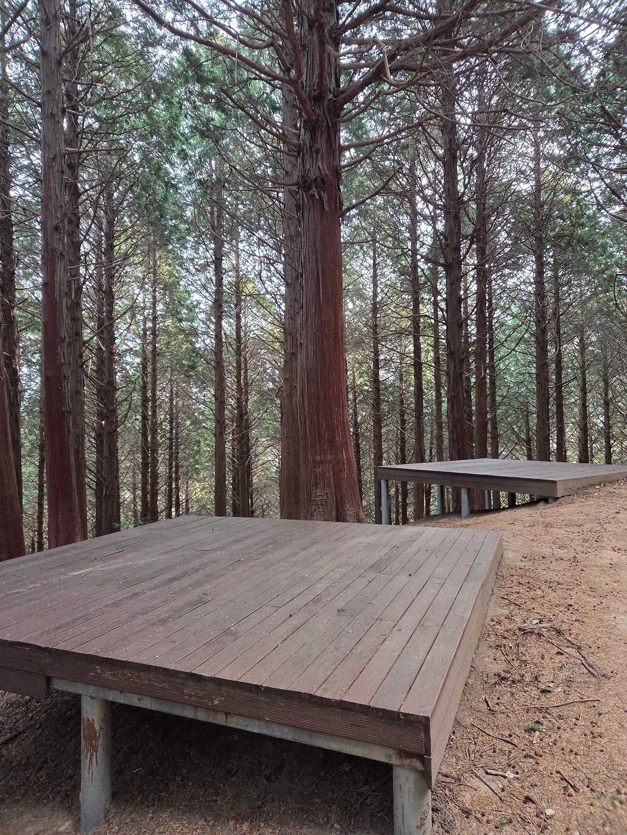 나 홀로 여행에 필요한 것 중 하나는 두려워하지 않는 마음이다. 안일한 생각일지 몰라도 산에서 별 일 있겠나 하는 마음이 없다면 혼자 숲에 들어갈 수 없다. 씩씩하게 걸음을 옮기며 오롯이 편백숲을 누리게 되었다는 생각으로 조금 들떴다. 갈림길에서 정상으로 가는 길 대신 편백숲으로 방향을 잡았다. 길은 시나브로 낮아지는 순둥순둥 길이라 어렵지 않았다.