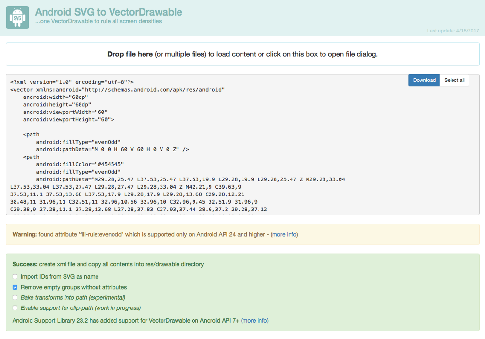 안드로이드 개발자에게 넘기기 전에 SVG 파일이 문제가 있는지 가볍게 확인하고 싶은 경우 아래와 같은 사이트를 추천해드립니다.