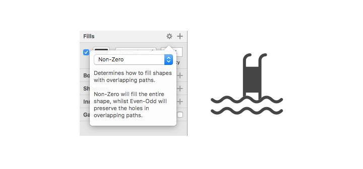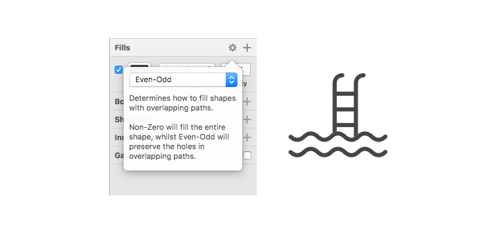 Fills 섹션에 가면 설정 아이콘이 있습니다. 클릭 시 Even-Odd가 디폴트 값인 것을 확인할 수 있습니다.