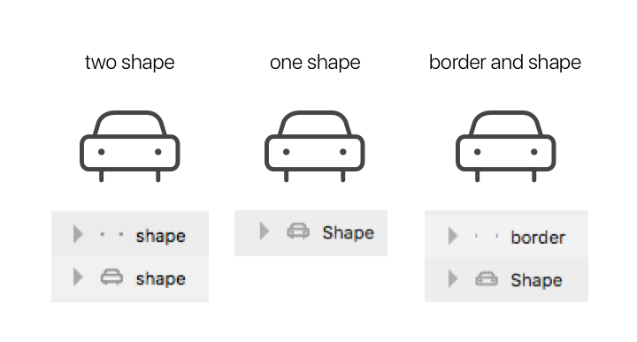 위 3가지 방법들은 옳고 그름이 없습니다. 다만 어떻게 이 아이콘을 나중에 활용할 것인가에 따라 만드는 방법이 달라지겠죠. 만약에 자동차 아이콘 안에 헤드라이트 색상을 바꾸고 싶다고 하면 위 방법 중 1번을 선택하면 될 것이고 선의 두께를 따로 조정하고 싶다 하면 3번 방식을 택하면 됩니다.