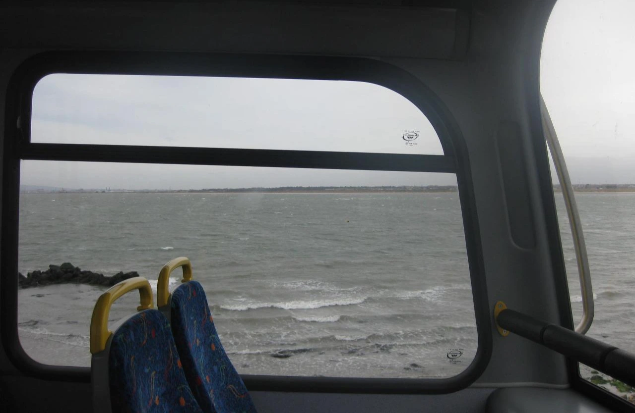 버스 2층의 통 유리창으로 더블린과 마주한다.