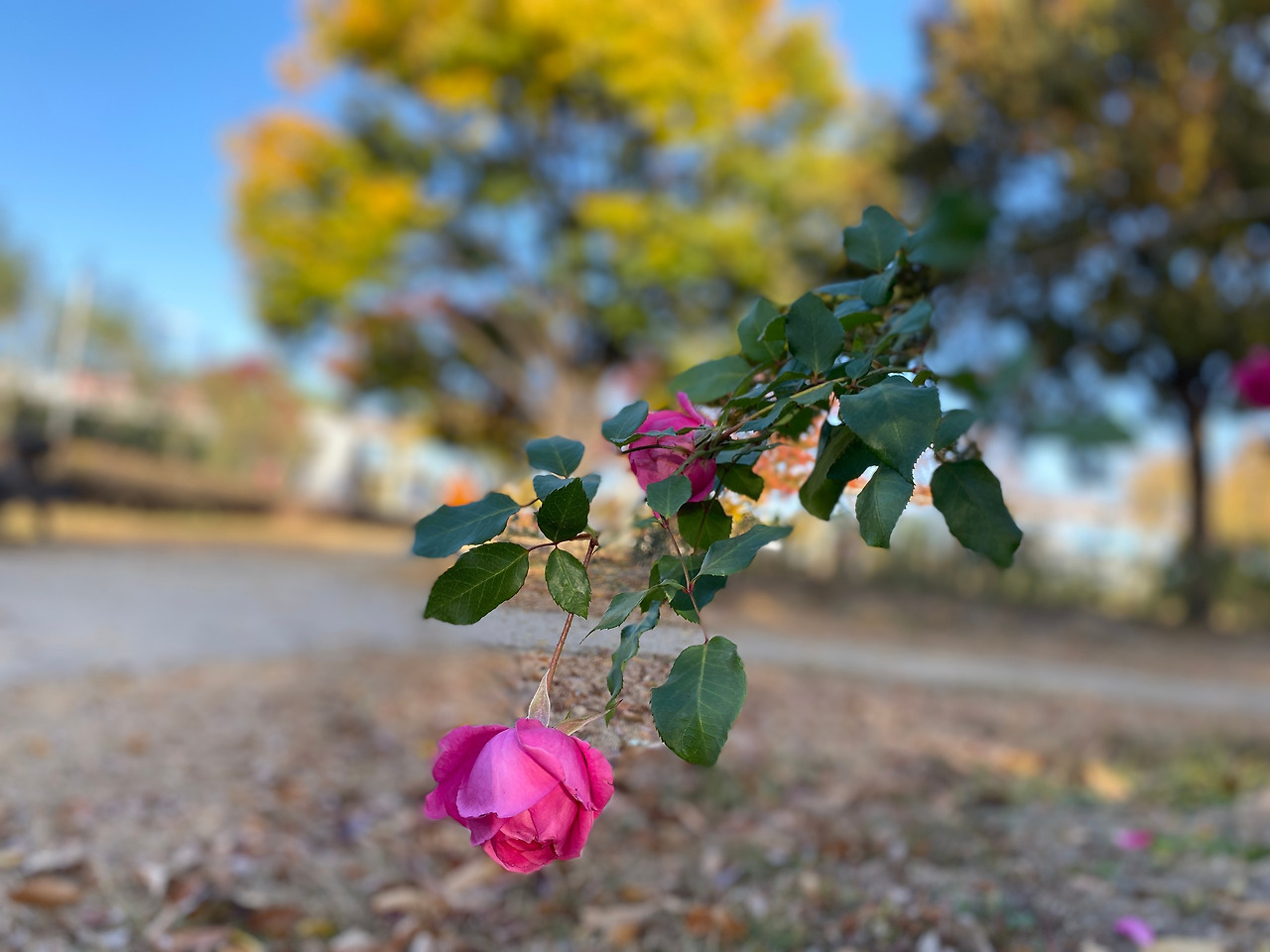 가을에서 겨울로 넘어가고 있는지 장미가 기력을 다해 꽃 피우고 있는 듯하다.