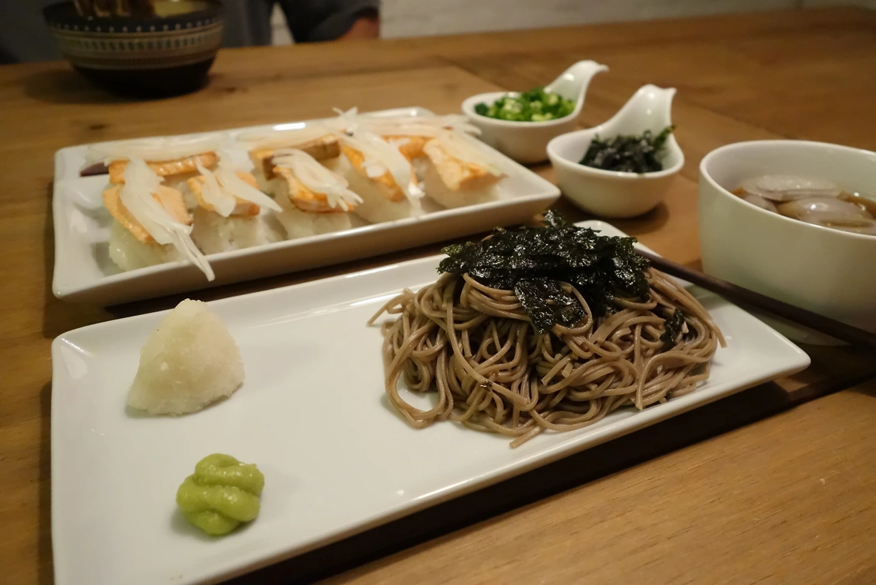 "응. 메밀국수랑 연어초밥 너무 잘 어울리지 않아??"