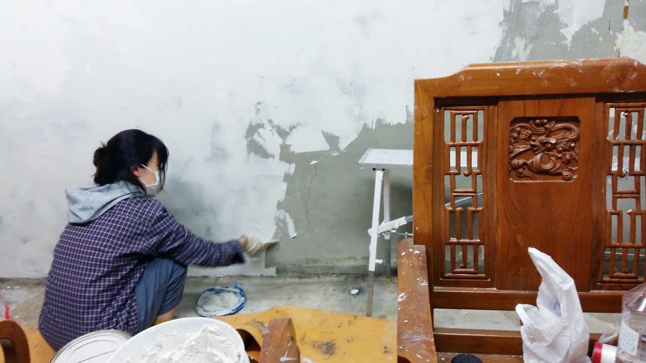 벽 사이사이 생긴 틈새를 채우기 위해 핸디코트를 바르는 것은 꽤나 재미난 일이다. 얼룩덜룩한 벽이 하얗게 변하는 것도 신이 나지만 매끄럽게 빈틈이 채워지는 것 역시 기분이 좋았다. 이렇게 빈틈과 굴곡을 채우다 보면 무엇이든 새롭게 시작할 수 있을 것 같은 느낌이 들었다. 이 공간이 이전과는 전혀 다른 곳으로 탄생될 수 있을 것 같은 기대도 부풀어 올랐다.