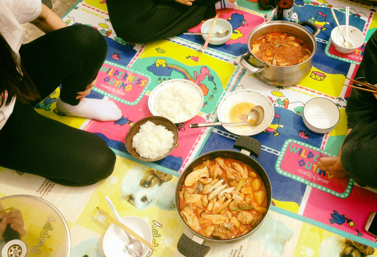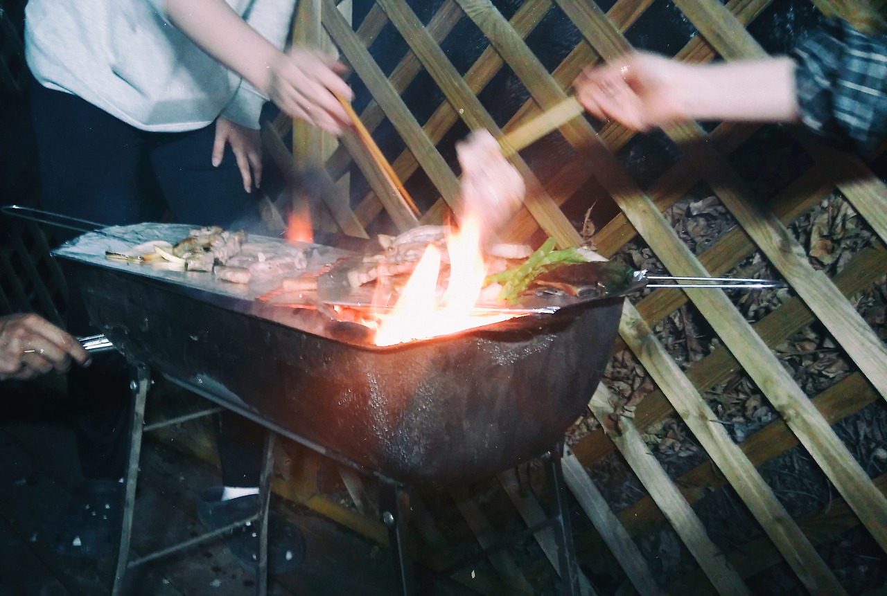 그렇게 시간이 흘러 흘러 저녁이 되고(그러고 보니 하루 종일 진짜 담에 뭐 먹지-? 만 생각한 것 같다ㅋㅋㅋ) 저녁 요리팀은 찌개를, 언니 오빠들은 나무와 불의 사투를, 나머지 아그들은 야채와 밥을- 그렇게 우리들의 마지막 날 밤을 아우르는 바베큐 파티가 시작되었다. 맛있는 음식에, 좋은 사람들과, 한산한 곳에서, 우리들의 웃음소리만 가득했다.
