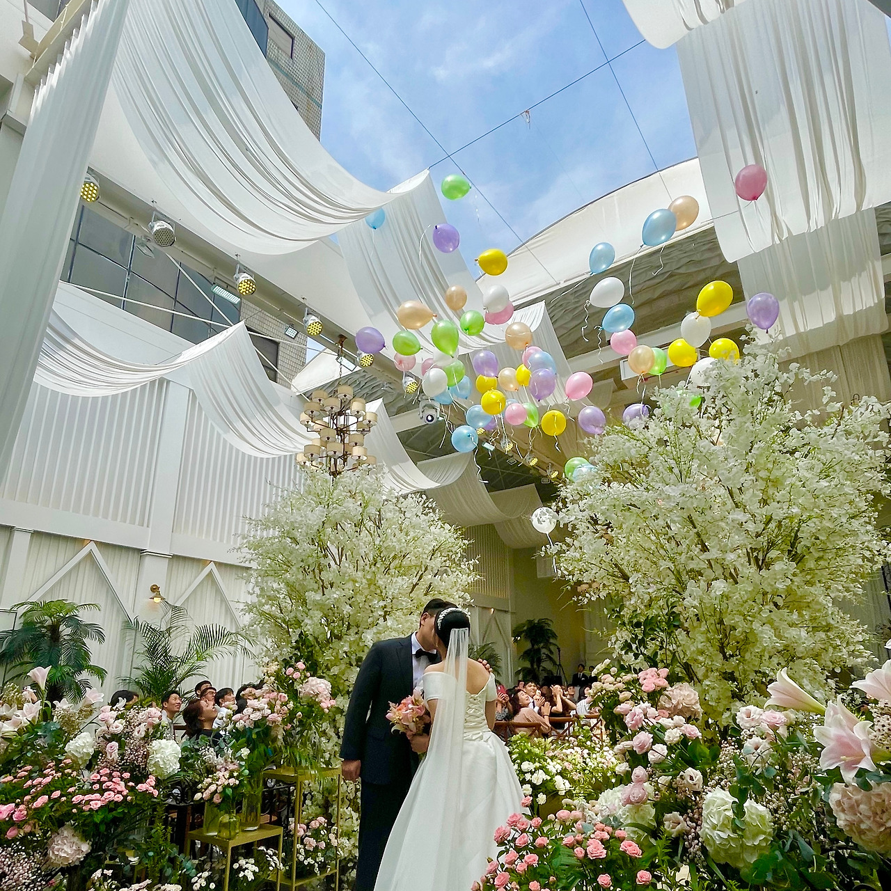 옷을 갈아입고, 연회장을 돌며 인사를 하고, 잠깐 앉아 음식을 맛보다가 정산을 진행했다. 그리고 비로소 오늘의 일정이 모두 끝났다. 맥도날드라도 가서 뭔가 먹을까 싶었지만 너무 씻고 싶은 생각에 집으로 향했다. 머리의 핀을 하나하나 빼고, 진한 메이크업을 씻고 나와서 나는 메신저로 와주신 분들께 인사를 전하기 시작했다. 사실 결혼식이 어떻게 진행이 되었는지 모르겠다. 사회자의 멘트, 배경음악 하나도 들리지 않았다. 그렇지만 계속 웃었다. 어둡고 엄숙한 분위기의 예식을 하고 싶지 않아서 일부러 밝은 홀을 선택한 만큼. 다행히 예식 하는 날 하늘은 높고 맑았고, 이벤트였던 천장 오픈과 풍선 날리기도 예쁘게 진행되었다. 친구들이 보내준 사진은 모두 하늘과 풍선과 우리가 함께 있는 모습이었다. 비록 실수도 있었지만 만족스러운 완벽한 결혼식이었다!