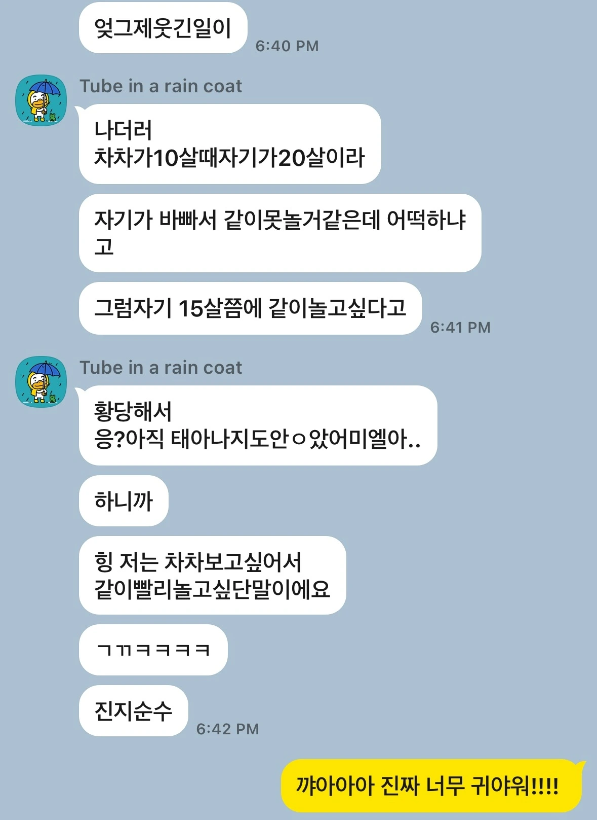 언니가 보내준 조카의 엉뚱한 대답. 나한테는 티도 별로 안 내면서 은근 차차를 많이 기다리고 있었나 보다. 어쩜 이렇게 사랑이 넘치는 사랑스러운 사랑둥이인지! 나도 너와 차차가 만나는 모습을 빨리 보고 싶어 <3