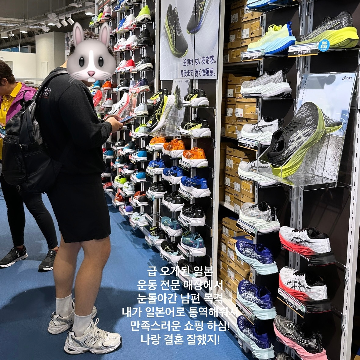 목적지인 후쿠오카는 비록 내가 5월에 갔다 왔지만 도쿄나 오사카보다 사람이 덜하고, 뚜벅이로 다니기 편하기도 하고 음식도 맛있어서 결정했다. 도착한 날은 후쿠오카 마라톤 대회 1주일 전이었다. 달리기 동호회에서 만나서 결혼한 커플이기도 하고, 최근 하프 마라톤 대회를 완주하고 달리기에 불붙은 남편은 생활스포츠 강국인 일본에서 새로운 운동화와 수영 물안경을 사기로 했다. 마침 후쿠오카에 큰 스포츠 전문 매장이 오픈해서 라멘을 먹고 숙소에 가방을 두고 쇼핑하러 달려갔다.