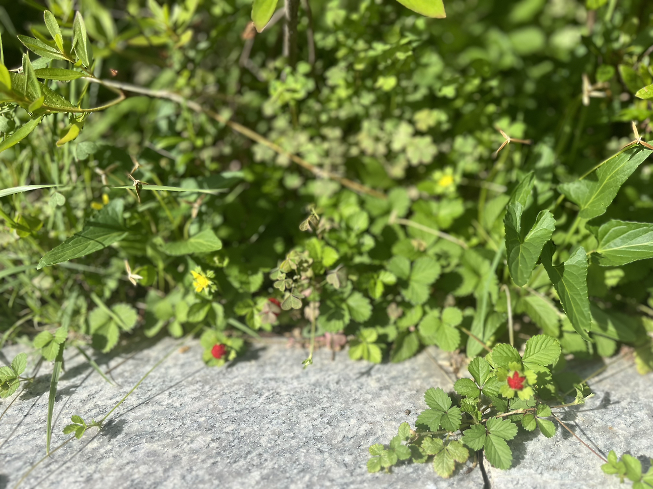 첫째를 마중하는 유치원 버스 정류장 가는 길에 딸기가 종종 열린다. 그건 뱀딸기다. 엄마는 어린 시절 먹었다고도 하는데, 이름이 왠지 수상하다. '뱀'이라는 접두사는 가끔 의뭉스럽고 독살될 것만 같다. 아파트 화단에서 자라는 과일이라니, 짙은 초록에 툭툭 튀어오른 붉은 색만큼이나 이질적이다. 우리는 그저 가까이에서 뱀딸기를 보고, 가끔은 들꽃을 꺾어 꽃다발을 만드는데 끼워넣는다. 작년까지만 해도 너덧개 열렸던 딸기의 줄기들은 여기저기 버져 있어서, 아파트 화단 곳곳에서 찾아볼 수 있다. 역시나 자연은 사람보다 곰살맞고 굳건한다.