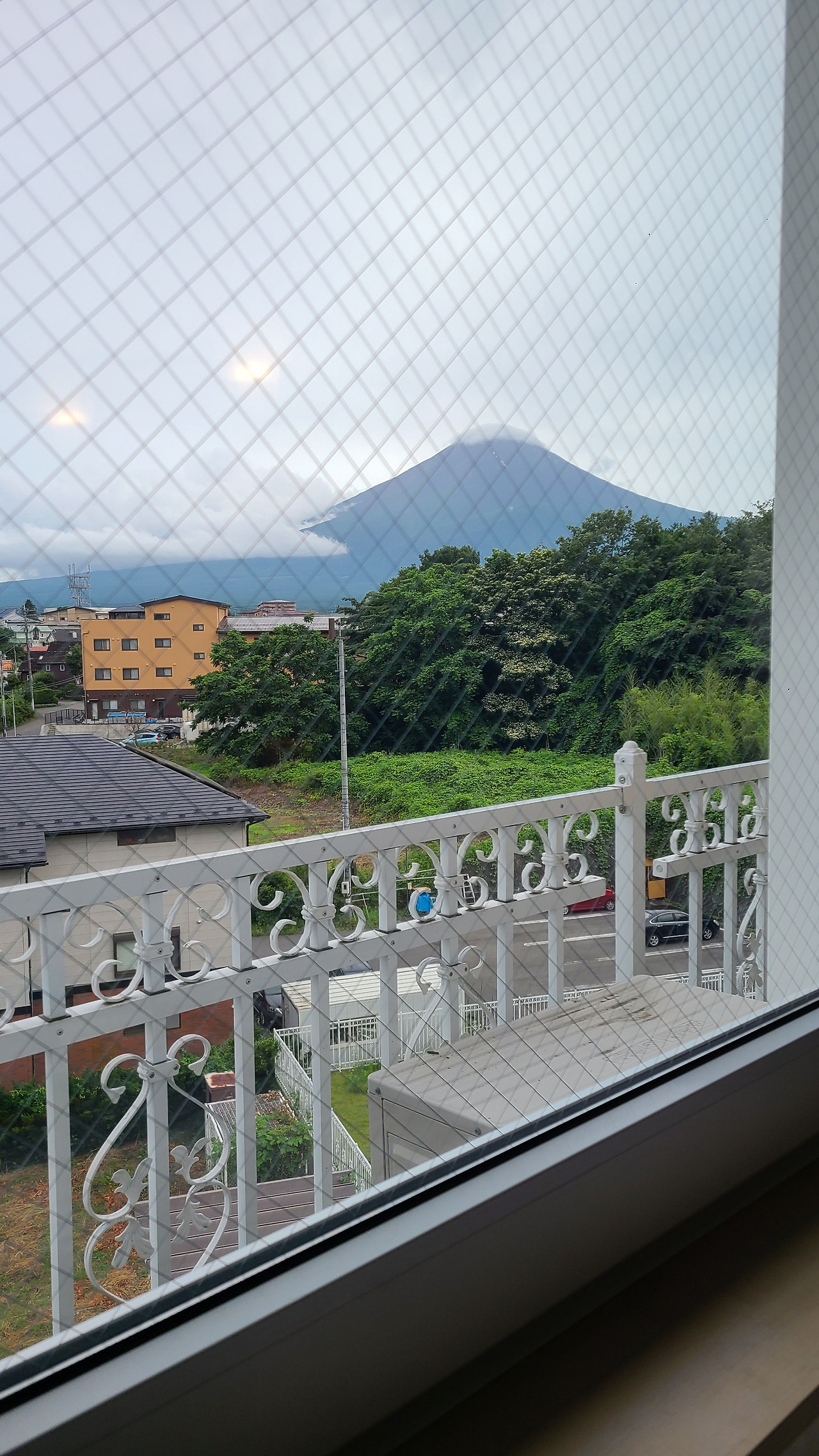 호텔 창문을 통해 보이는 후지산 / 해질녘의 가와구치호수와 후지산