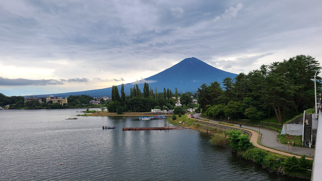 역 앞 우동집에서 간단하게 점심을 해결한 후 가와구치호수로 가는 버스에 탔다. 비가 예보되어 있었지만 안개가 꼈을 뿐 비가 내리지는 않아서 그나마 다행이었다. 가와구치코역에 도착하자 전 세계에서 온 관광객들이 배낭을 메거나 캐리어를 끌고 역 주변에 가득했다. ‘혹시 비가 와서 불꽃놀이가 취소되면 어떻게 하지’라는 걱정을 거의 매일 했는데 사람들을 보니 그럴 일은 없겠다는 생각이 들어 안도했다.