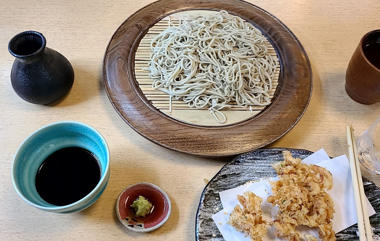 하루 전 슈젠지에서 더위를 참지 못하고 들어간 소바집은 테이블이 딱 세 개고 주방 쪽으로 길게 있는 테이블과 의자 몇 개가 더 있는 작은 가게였다. 구글 평점은 4점이 넘었고, 가게는 시원했으며 직원들은 매우 친절했다. 다만 소바의 가격이 약간 부담스러웠는데, 그냥 소바만 시키면 1000엔이고 새우튀김과 같이 있는 세트를 시키면 1650엔(약 16000원)이었다. 몇 달 전 하코다테에서 새우튀김이 들어간 온소바를 950엔에 먹은 것에 비하면 분명 비쌌지만, 소바만 시키면 면과 간장만 나올 것 같아 튀김도 같이 시켰다. 몇 분 후 소바가 나왔는데 정말로 면과 간장만 주었다(직접 갈은 와사비도 같이 주었다). 간장 위에 파나 김이 뿌려서 나오진 않을까 내심 기대했는데 그렇지 않았다. 그리고 몇 분 후 튀김이 나왔는데 보는 순간 ‘아’ 하는 탄성이 속으로 나왔다. 내가 기대한 건 큰 왕새우였는데 새우젓에 들어갈 만한 작은 새우들을 야채 튀김처럼 튀긴 것이었다. 나중에 검색해 보니 그 튀김 안에 들어간 새우는 시즈오카의 명물 ‘사쿠라에비(벚꽃 색이 나는 새우)’라고 한다. 그래서 비쌌는지는 모르겠지만 내가 원한 새우와 맛은 분명 아니었다.
