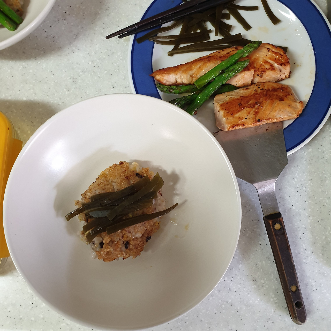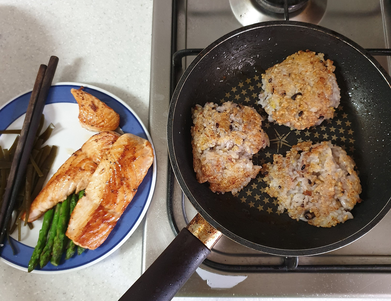 4_현미밥을 연어 기름에 앞뒤로 노릇노릇 구워준다!!!