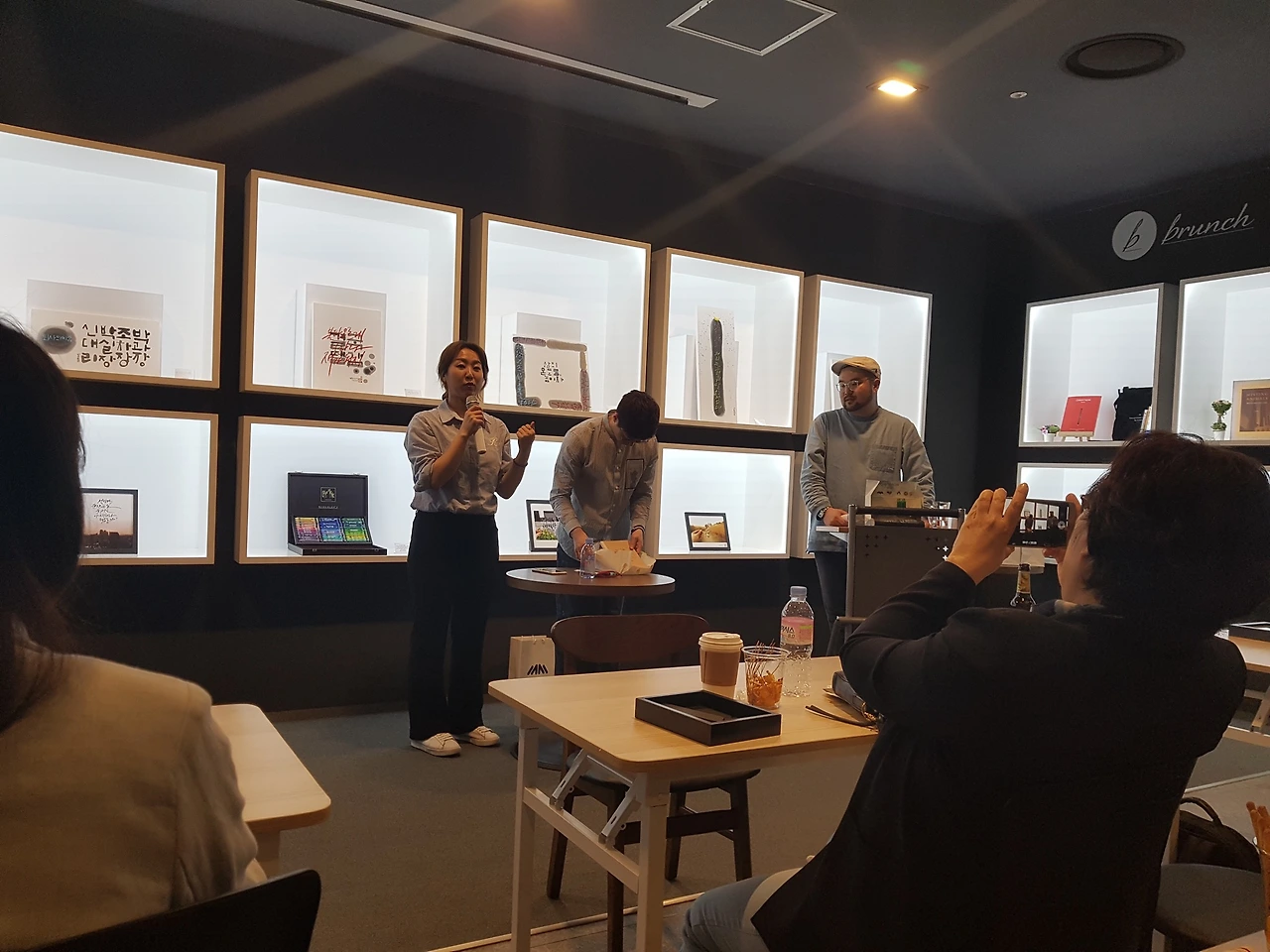 덧글에 신청했던 자신의 문구를 캘리그라피로 써보는 미니 캘리강좌가 진행되었다.