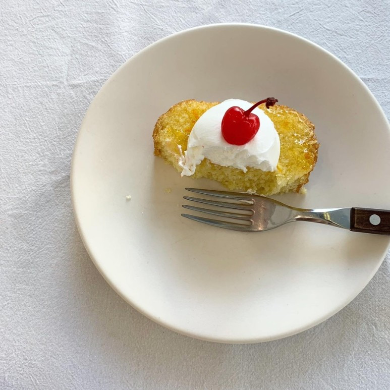 오렌지를 발음할 때 ‘오랜’이라는 관형사가 좋다. 오랜 관계, 오랜 시간, 오랜 마음 등 오랜의 다음 말에는 대체적으로 내가 좋아하는 단어들이 붙는다. 우울, 짜증, 기다림과 같은 부정적임이 뒤따를지라도 켜켜이 쌓인 오랜의 흔적과 분위기가 왠지 모든 것을 포용할 것만 같다. 이미 지나온 긴 시간은 그 자체로 애정이 되기에. 묵직하고 단단한, 그러나 사르르 쉽게 씹히는 시트는 왠지 추억과 닮아 있다. 떠올리면 먹먹하지만 금세 사라지고 마는. 그래서 파운드케이크처럼 먹먹한 디저트를 먹을 때면 오랜 시간들을 반추하게 된다. 나의 유년 시절과 어린 시절, 고교 시절과 대학시절, 사회 초년생이었던 시절들을 곰곰이 생각해 본다. 시간의 집처럼 묵직하고 단단한 케이크를 먹으면서.