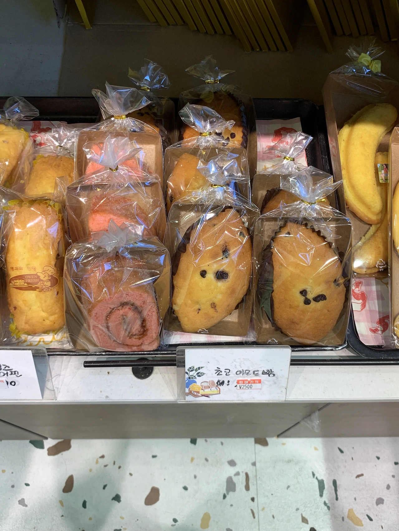 - 과자와 쿠키류는 출입문 기준 왼쪽에 깔끔하게 진열